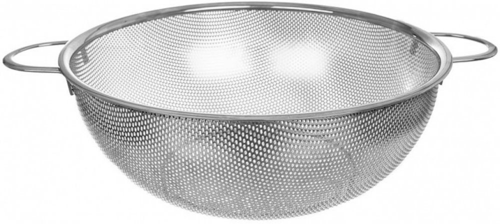 Cedník ve tvaru mísy z nerezové oceli s úchyty