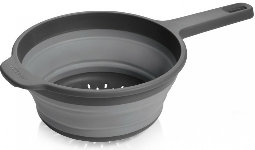 Cedník je skládací a má rukojeť s očkem pro zavěšení, cezení je proto komfortní a bezpečné.V rozloženém stavu je cedník GrandCHEF dostatečně prostorný, po použití jej snadno složíte do plochého tvaru, takže zabírá minimum místa.Cedicí dno s otvory je opatřeno nožkami pro stabilní cezení potravin přímo do dřezu.