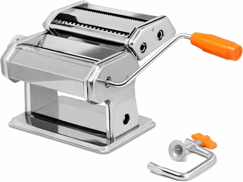 Stroj na výrobu těstovin - Stroj na výrobu těstovin je vyroben z robustní nerezové oceli, hodí se svým krásným designem a pevnou konstrukcí do každé kuchyně! Nastavení šířky těstovin - S tímto strojem na těstoviny si můžete vybrat z 8 různých tlouštěk (1 až 4 mm) a během krátké doby získat dokonalý plát těstovin. Je to mnohem jednodušší než použití válečku na těstoviny. Snadné a rychlé čištění - Vysoce kvalitní nerezová ocel zajišťuje, že se strojek na těstoviny snadno a rychle čistí. Zbytky mouky a těsta lze odstranit suchým hadříkem nebo kartáčkem. Stabilní kompakt - Pohodlná stolní svorka může zvýšit stabilitu tím, že strojek na těstoviny během používání bezpečně drží na místě; Odnímatelná klika a plynulé otáčení umožňují tak snadné válení těsta! Strojek na těstoviny je ideální pro domácí těstoviny, jako jsou lasagne, špagety, tagliatelle, ravioli, fettuccine, linguini nebo vermicelli, které chutnají skvěle a čerstvě! Je to také ideální dárek pro rodinu nebo přátele!Tento výrobník těstovin zjednodušuje výrobu těstovin a umožňuje vám snadno si doma vychutnat čerstvé špagety, trenette a linguine.Features:√ Rychlé a snadné sestavení√ Osm nastavení tloušťky√ Čistý a elegantní design√ Kompaktní skladování√ Odnímatelná rukojeťParametry produktu:Z hlediska tloušťky:Rám: 0,8 mmKryt: 0,4 mm (všechny kryty)Základna: 0,7 mmMateriálové hledisko:Rám, tyč na těstoviny a nůž na těstoviny jsou pozinkovanéKryt, základna je 410Rozměry výrobku: 21,0 * 20,6 * 14,8 cmRozsah dodávky:součástí dodávky je 1 x hlavní díl1 x díl pro krájení těstovin1 x klika1 x manuálTipy:1.Jak se čistí?Přístroj otřete suchým a měkkým hadříkem. Nechte ji hodinu vyschnout na vzduchu. Případné nečistoty očistěte čisticím kartáčkem nebo strojem projíždějte aBasic Dough, dokud je neodstraníte. Při prvním použití vyklopte na stroj kousek těsta Vyčistěte stroj úplně.2. Používání a skladování.1) Při prvním použití stroje na něj vyklopte kousek těsta, abyste jej zcela vyčistili.2) Stroj vždy udržujte v suchu, zejména před uskladněním.