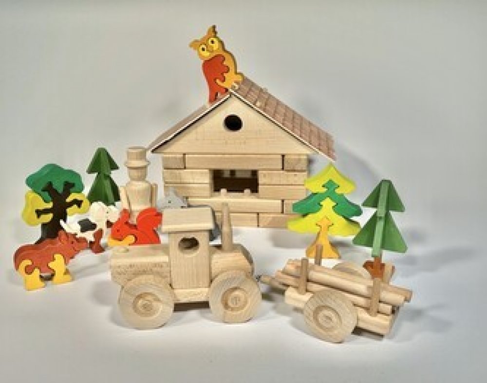 \nDřevěný herní set Hájovna seznamuje děti se životem v lese. Je vyroben v České republice z kvalitního dřeva. Obsahuje dílky s kolíčky/výstupky, se kterými děti postaví snadno a rychle hájovnu. Výstu