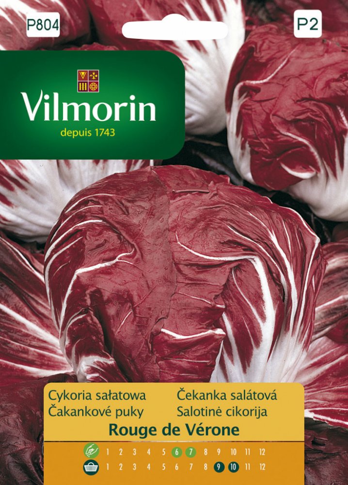 Čekanka salátová Rouge de Vérone Vilmorin Premium tvoří velké, pěkně nachově zabarvené hlávky mírně pikantní chuti. Čekanka salátová je vhodná pro přímé zpracování do salátů. Čekanka obsahuje vitamín C, povzbuzuje chuť k jídlu a příznivě ovlivňuje střevní peristaltiku.