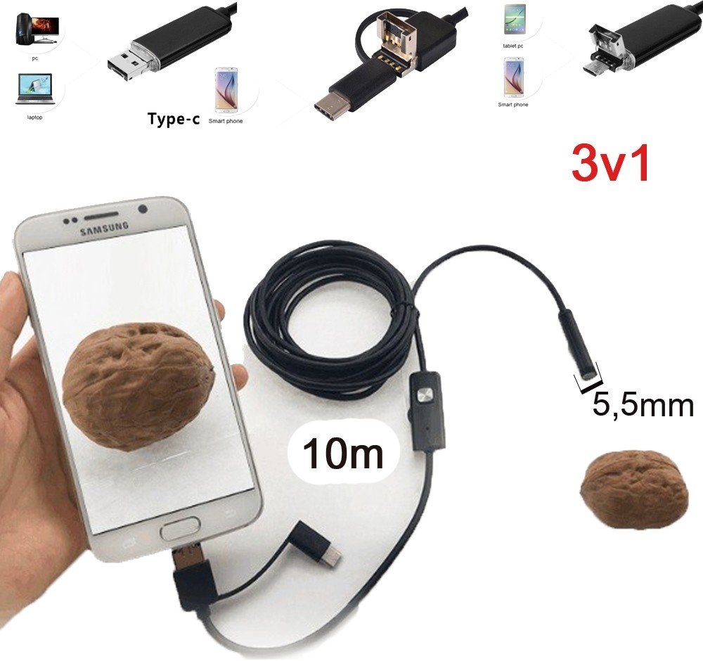 Endoskop CEL-TEC Ai55 je nová inspekční kamera 3v1, kterou lze použít s mobilními zařízeními Android vybavenými microUSB nebo USB-C konektorem a také s PC pomocí klasického USB-A. Stačí nainstalovat aplikaci/program a poté již sledovat obraz z kamery na telefonu nebo počítači. Kamera je vybavena 6 výkonnými LED. Zařízení je vhodné pro inspekci podvodních prostředí, motorových vozidel, ka...