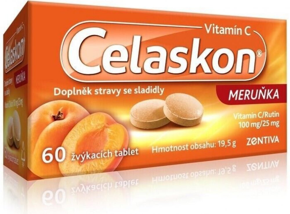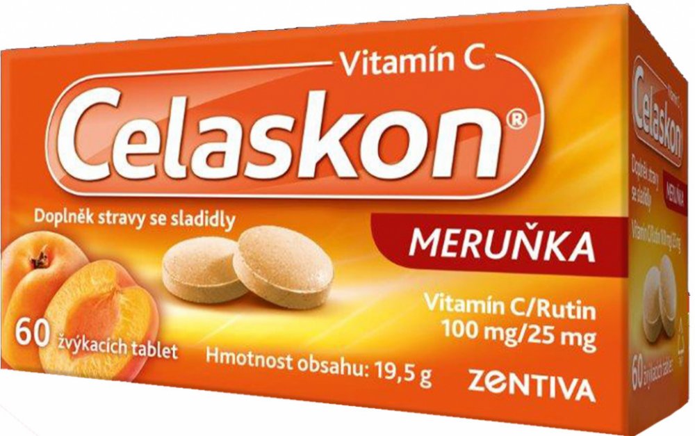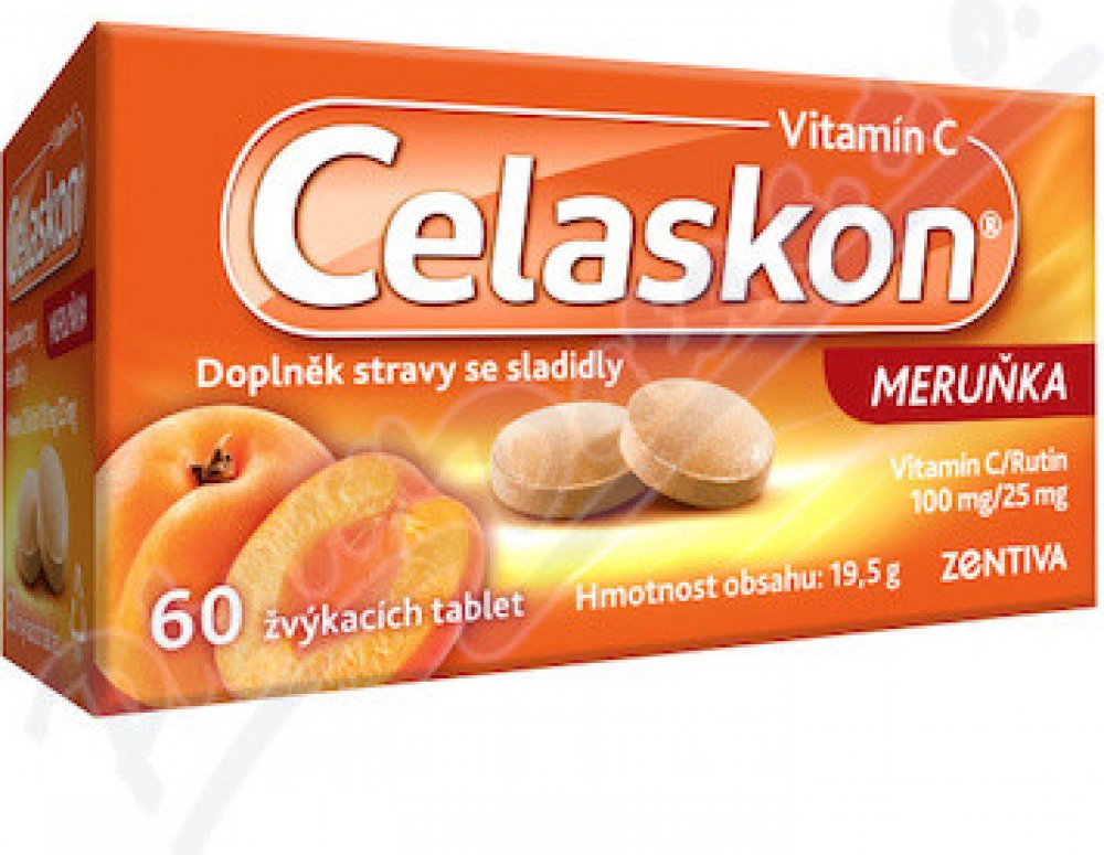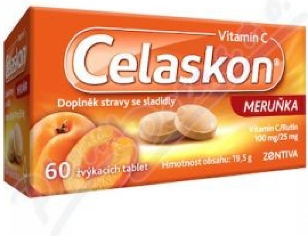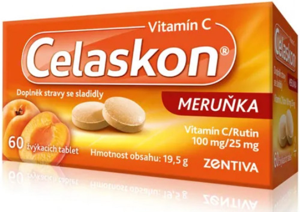 Celaskon je doplněk stravy v podobě žvýkacích tablet s příchutí meruňky. Celaskon obsahuje kombinaci vitamínu C a rutinu.