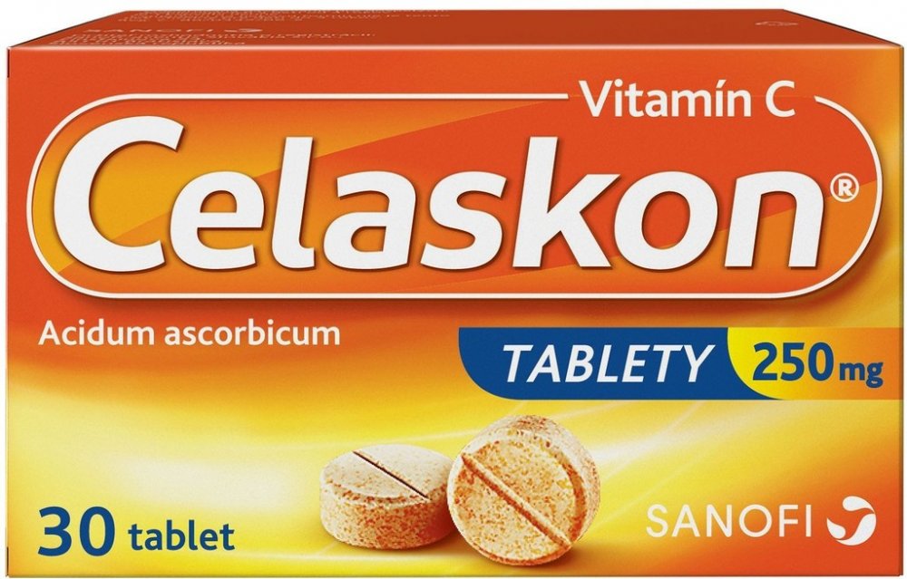 Přípravek Celaskon tablety 250 mg obsahuje 250 mg vitaminu C (kyseliny askorbové). Organismus si ho není schopen tvořit sám, proto se musí přijímat v potravě.