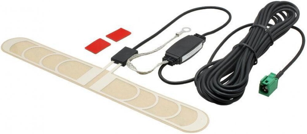 Calearo vnitřní TV anténa na sklo - čirá, samolepící na vnitřní stranu skla automobilu, umístění na sklo z vnitřní strany,