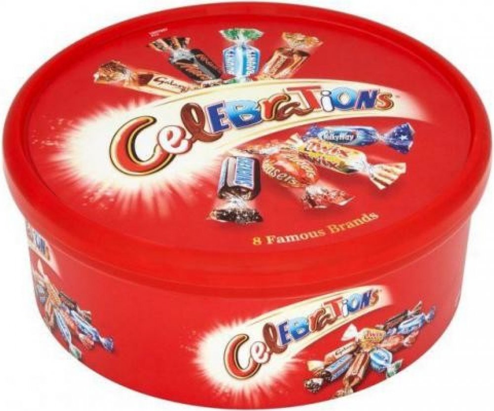 V dóze naleznete tyto mini čokoládové tyčinky: Mars, Galaxy, Galaxy Caramel, Bounty, Snickers, Maltesers, Twix a Milky Way.