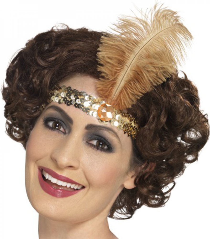 Pro 20. a 30. léta minulého století je charakteristická hudba, tanec a večírky ve stylu Velkého Gatsbyho. S tím je spojená i typická móda flitrových šatů, zdobených čelenek, rukavic a boa. Tato flitrová čelenka charleston zdobena pírkem v několika barevných provedeních je ideálním doplňkem na tematický ples 30. let.