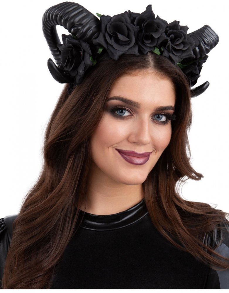 Čertovská čelenka s rohy a černými růžemi