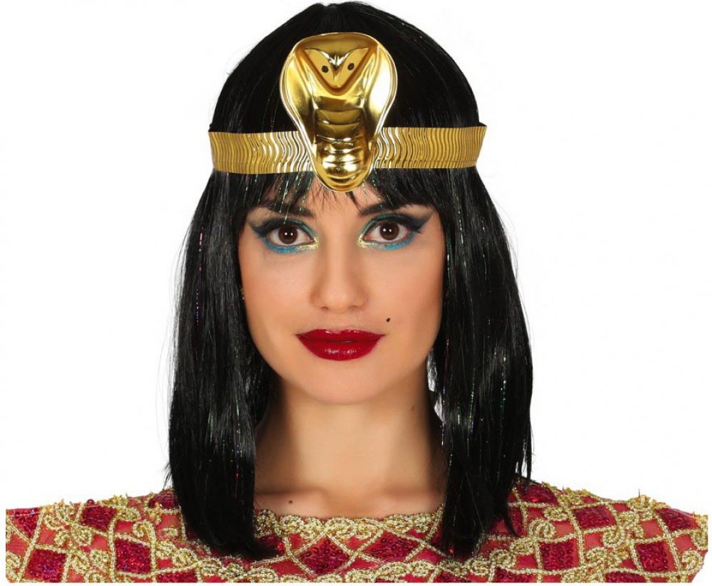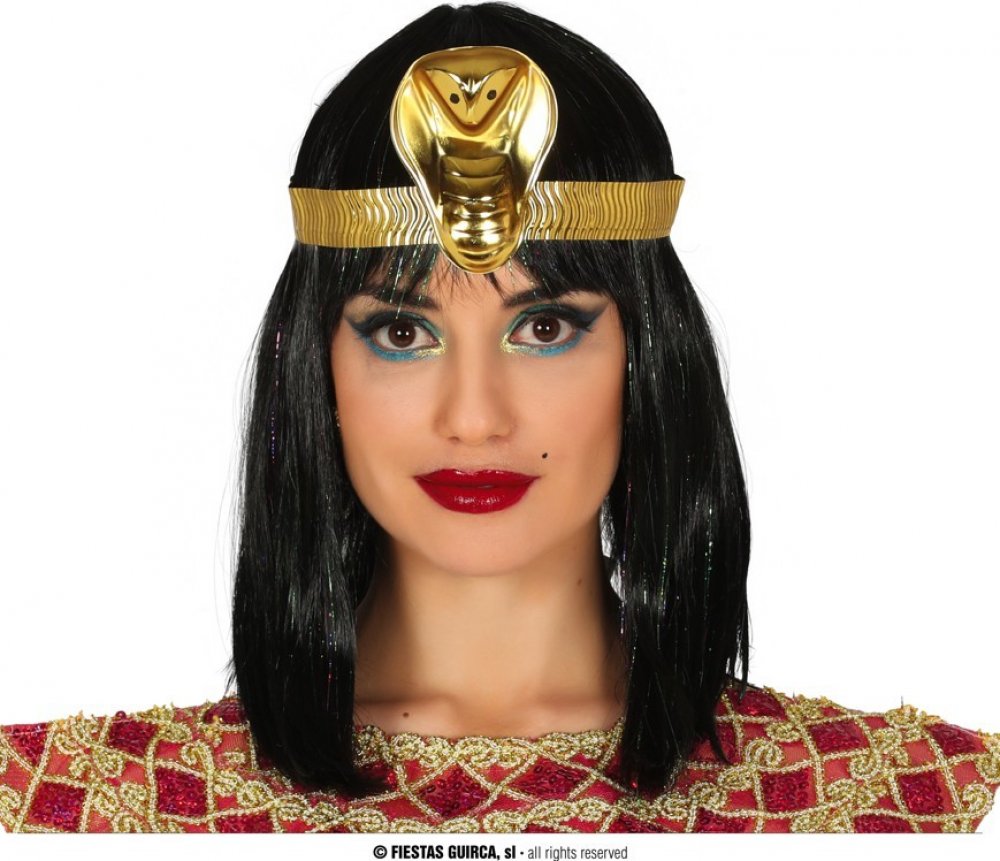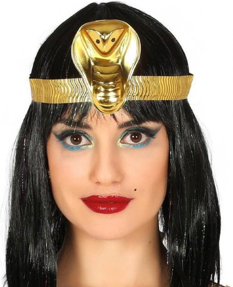 Čelenka egyptské královny Kleopatry. Egyptská čelenka s hadem, kterou nosila známá egyptská královna Kleopatra z rodu Ptolemaiovců skvěle doplní starověký karnevalový kostým egyptské krásky. Čelenku použijete na různých karnevalových akcích, párty v egyptském stylu nebo stužkovacím večírku. Skvělé jako fotodoplněk.