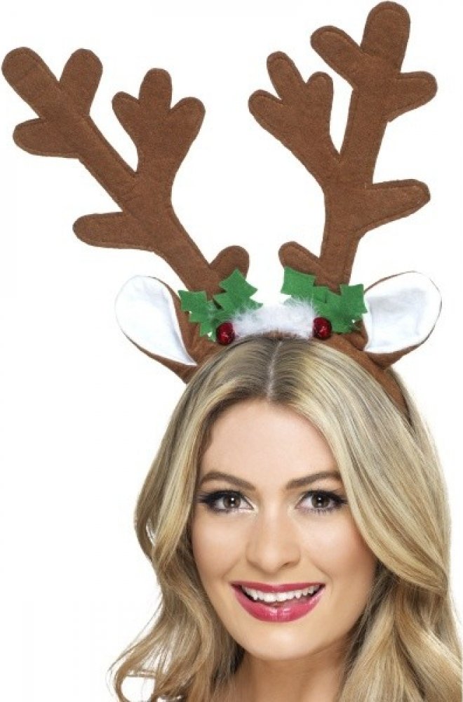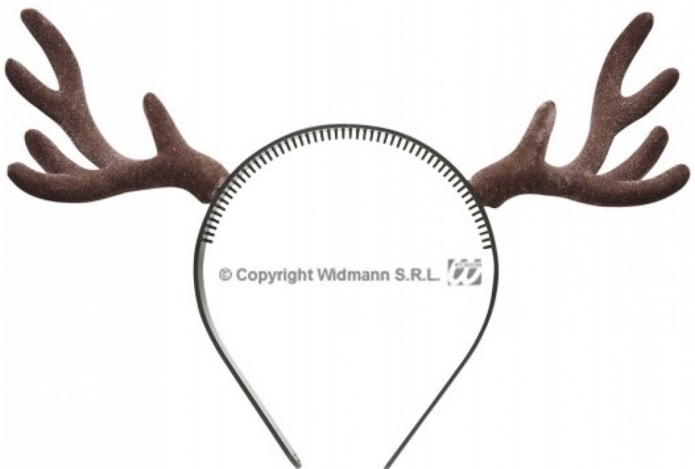 Skvělý vánoční doplněk značky Widmann jako čelenka jelení parohy. Čelenka je plastová a parohy jsou potažené semišovým potahem hnědé barvy.