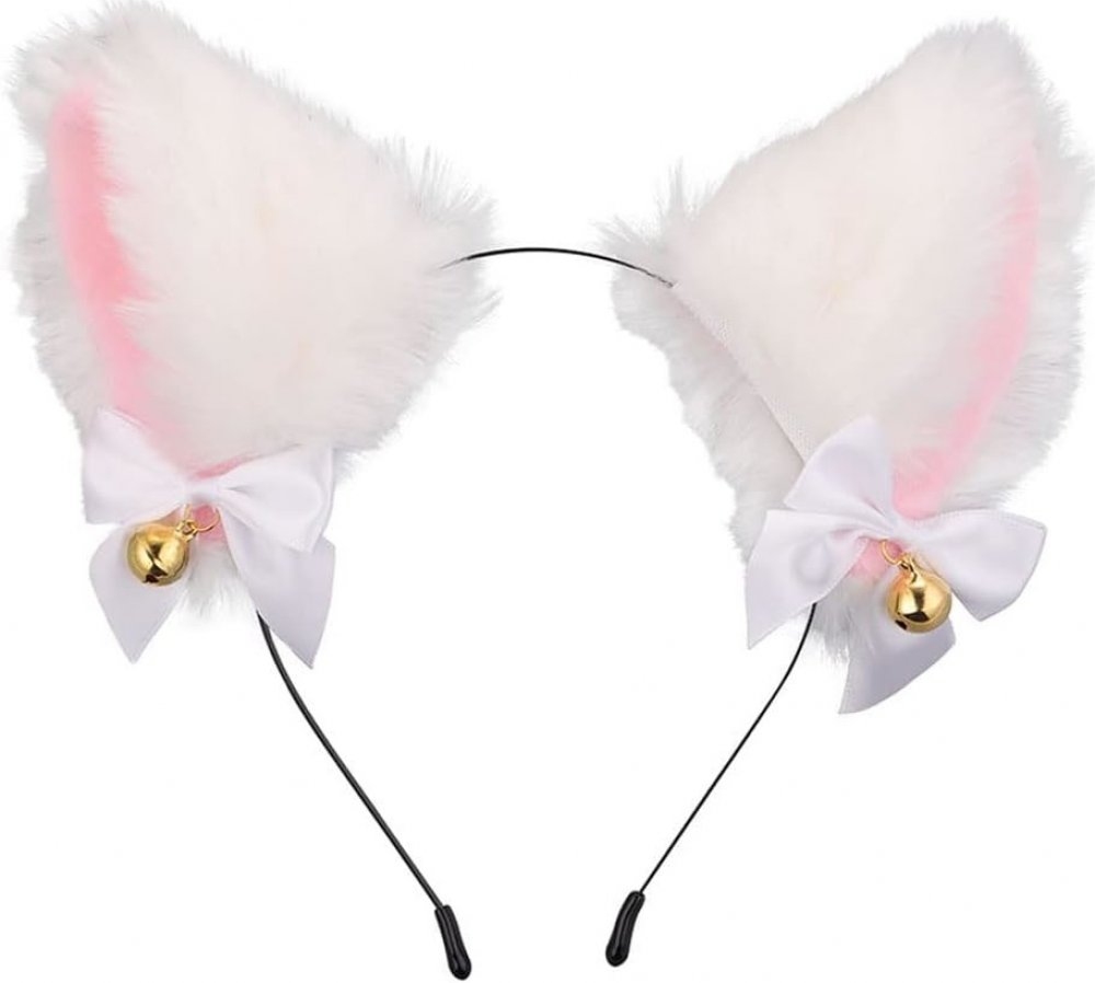 Perfektní pro Halloween: Kočičí uši zdobené roztomilými mašličkami a zlatými zvonky dělají tuto čelenku atraktivnější, prsteny nabízejí při každém pohybu stříbrný zvuk.