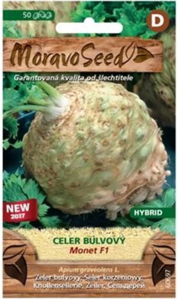 Celer Bulvový Monet F1 50 semen Raná, vysoce výnosná hybridní odrůda, určená pro sklizeň s natí nebo pro podzimní sklizeň ke skladování. Bulva je velká. Je odolná proti vybíhání do květu a vysoce tolerantní proti septorióze. Vegetační doba od výsadby pro sklizeň s natí je cca 90 dní, pro sklizeň ke skladování je cca 135 dní.