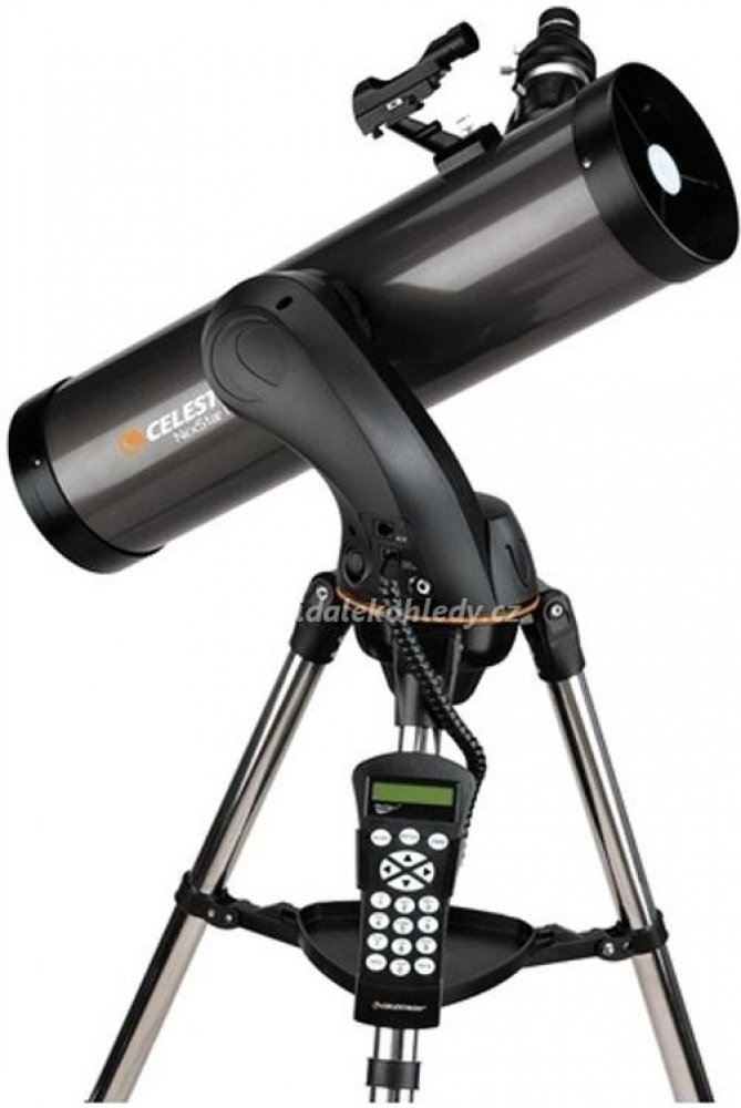- hmotnost: 8.2 kg Teleskop Celestron NexStar 130 SLT typu Reflector, průměr zrcadla 130mm, ohnisková vzdálenost 650mm, f/5 s automatickým GoTo naváděním SkyAlign nové generace. Hledáček Star Pointer typu Red Dot. Azimutální montáž poháněná servomotory v obou osách a řízená ovladačem. Databáze volitelných objektů více než 4.000 záznamů. Výškově stavitelný ocelový stativ s odkládací plochou. Jednoduchá montáž, snadné použití. Dalekohled vhodný pro začátečníky i pokročilé. K dalekohledu je dodáváno CD-ROM se software "The SkyX First Light edition".