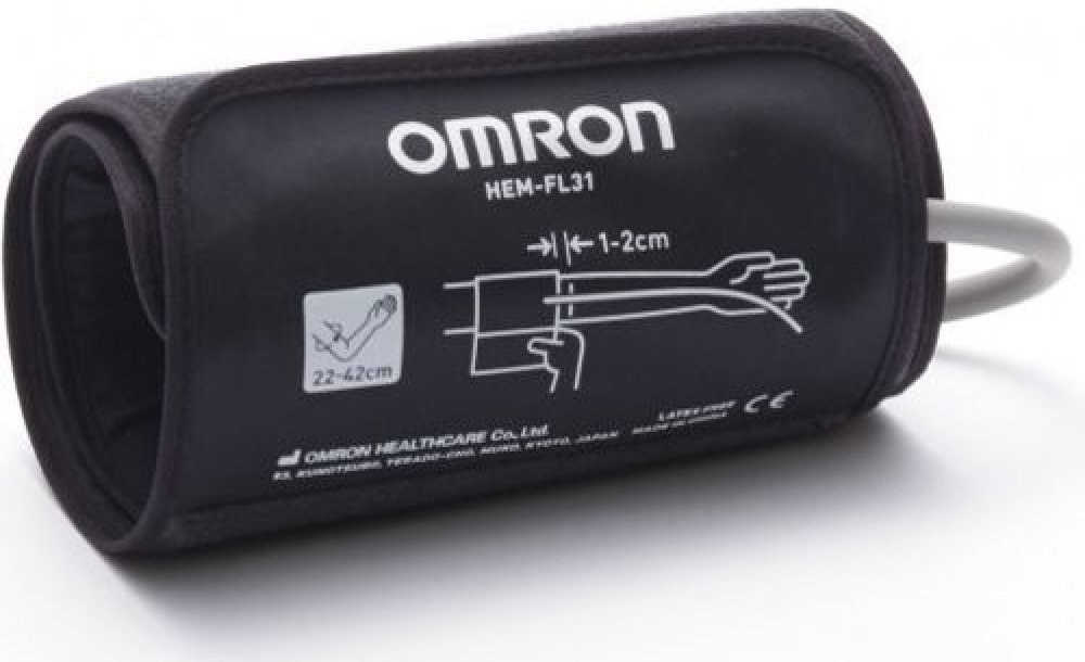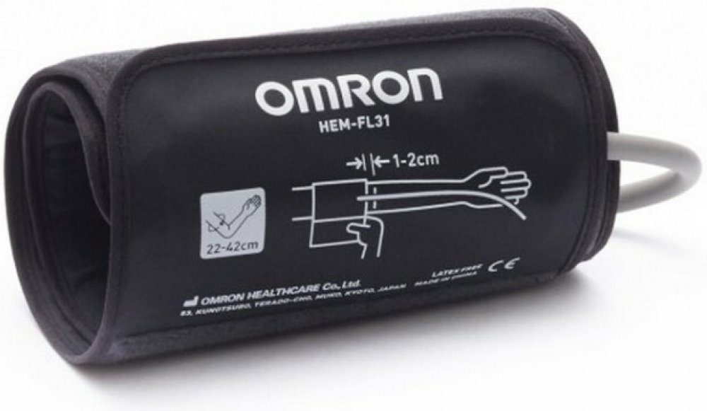Nelze připojit na tlakoměry dodávané s jiným typem manžety. Pevná tvarovaná manžeta univerzální velikosti pro obvod paže 22-42 cm. Jednoduše se nasazuje jednou rukou, její vnitřní měřící vak obepíná celou paži kolem dokola, takže měření krevního tlaku je ještě jednodušší a přesné při jakémkoli otočení manžety na paži.
