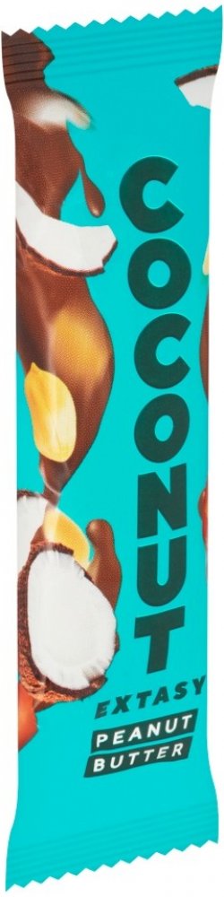 Kokosová tyčinka s arašídovou náplní v tmavé polevě. BEZ LEPKU Složení:arašídy 36%, fondán (cukr, glukózový sirup, pitná voda), tmavá poleva 13% (cukr, plně ztužený palmojádrový tuk, kakaový prášek se sníženým obsahem tuku, emulgátor (sójový lecitin), vanilkový extrakt, mléko), kokos 9%, cukr, sušené plnotučné mléko, palmový olej, glukózo-fruktózový sirup s obsahem maltózy, glukózový sirup, jedlá ...