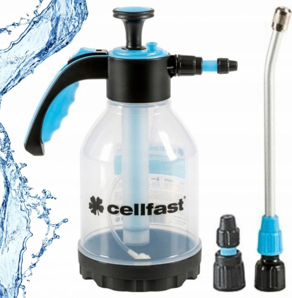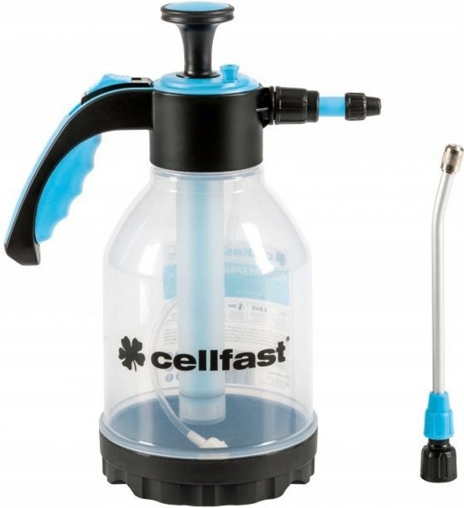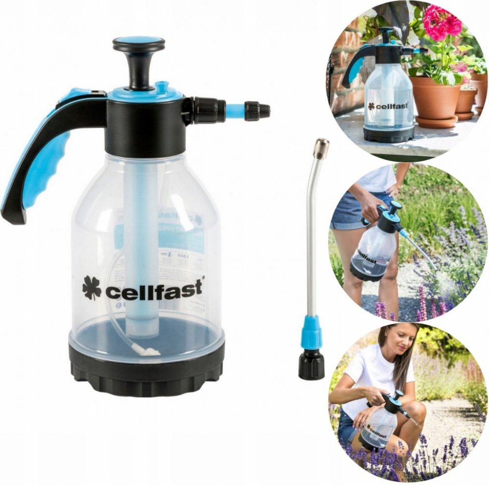 Tlakový postřikovač o objemu 1,5 litru, určený pro kropení a péči o tekutá hnojiva a přípravky na ochranu rostlin. Produkt renomované polské značky Cellfast.