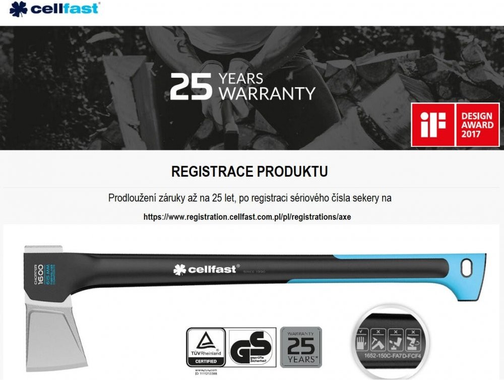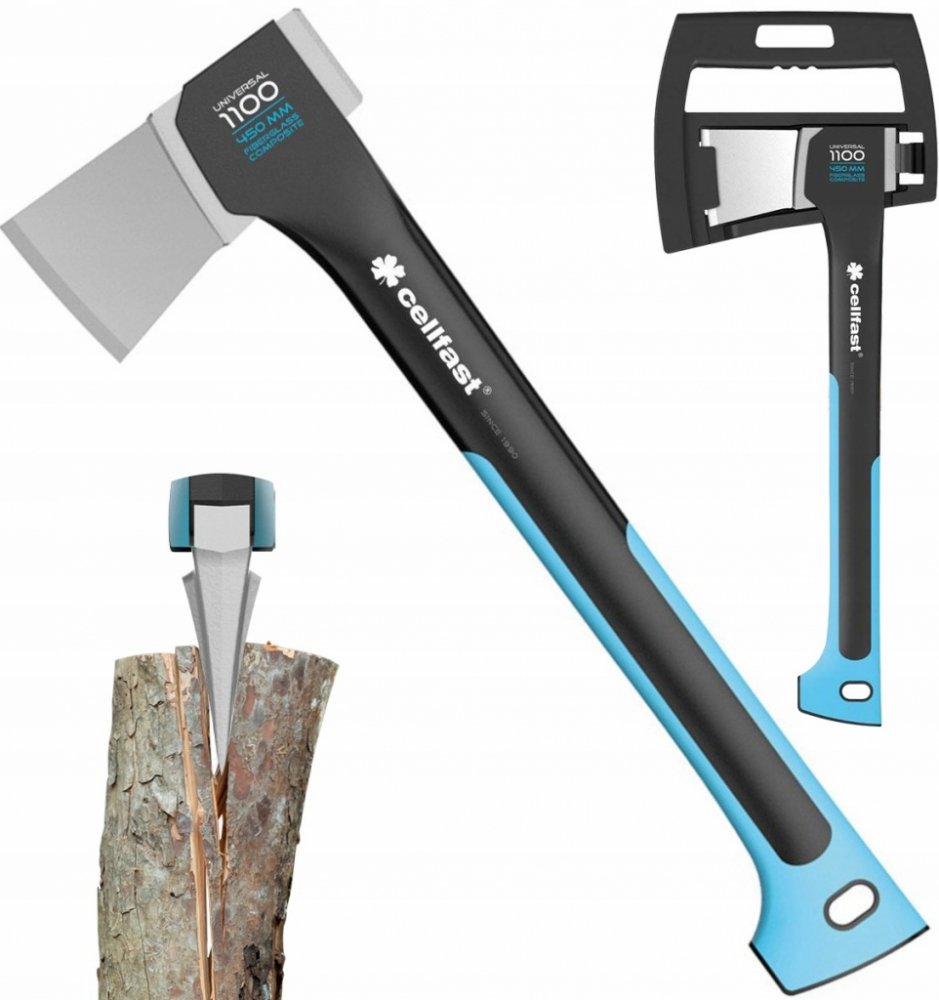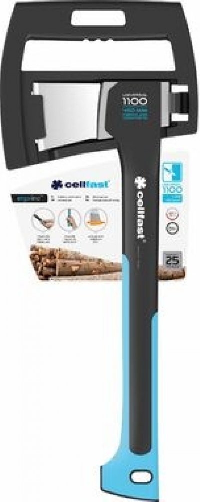 Univerzální sekera Cellfast vhodná pro tesařské, zahradní, stavební a úklidové práce. Profilovaná rukojeť z kompozitního materiálu zajišťuje odpružení při nárazu. Sekera váží pouhých 1,1 kg. Jemný protiskluzový povrch Safetouch pokrývá značnou délku rukojeti a zajišťuje bezpečné uchopení a komfort použití. Sekera padne pěkně do ruky a je vhodná zejména pro štípání menších polínek a kmenů.
