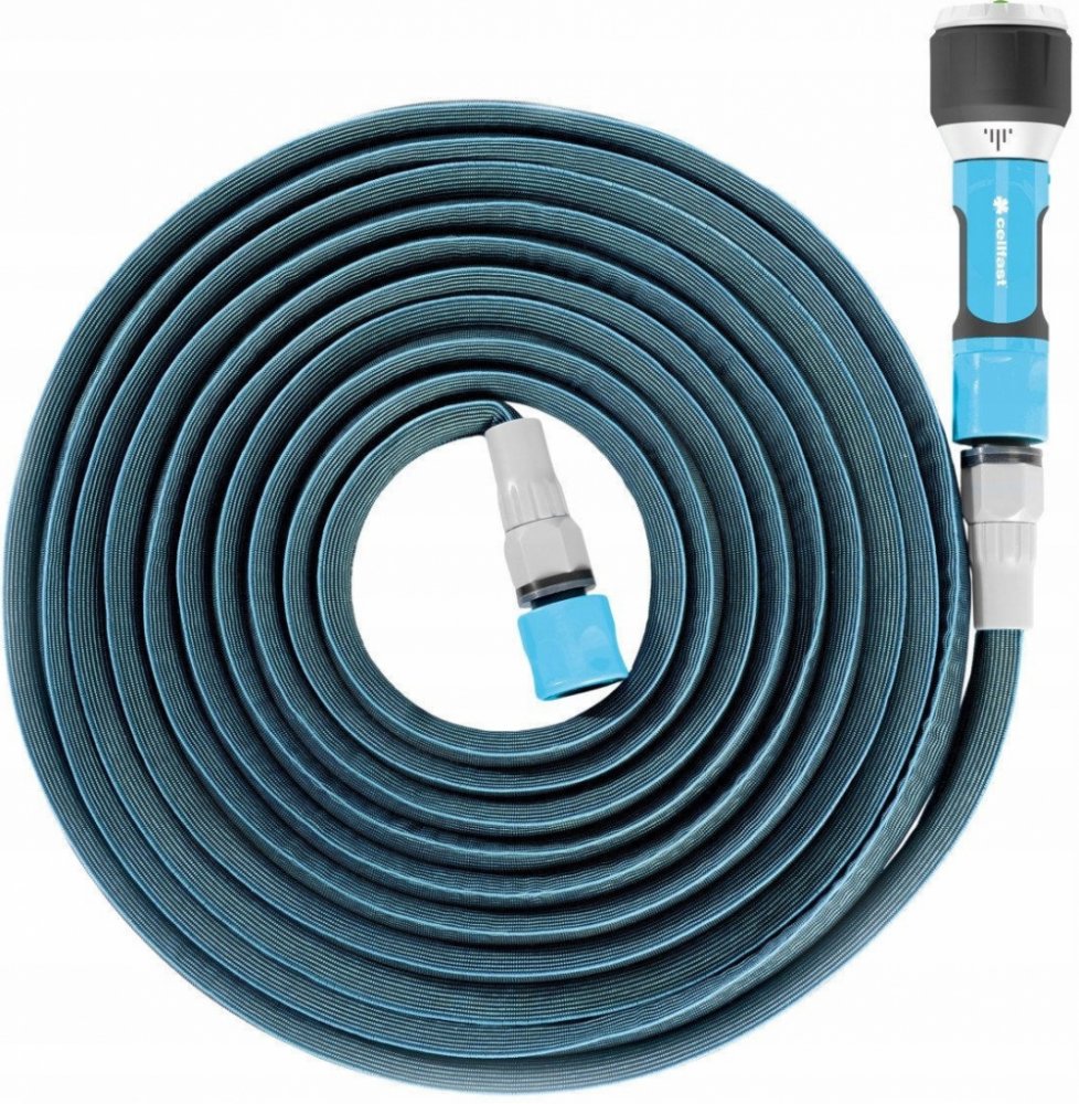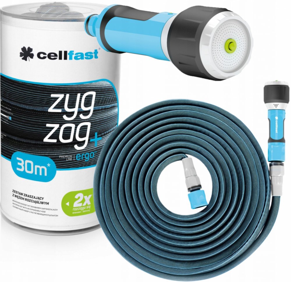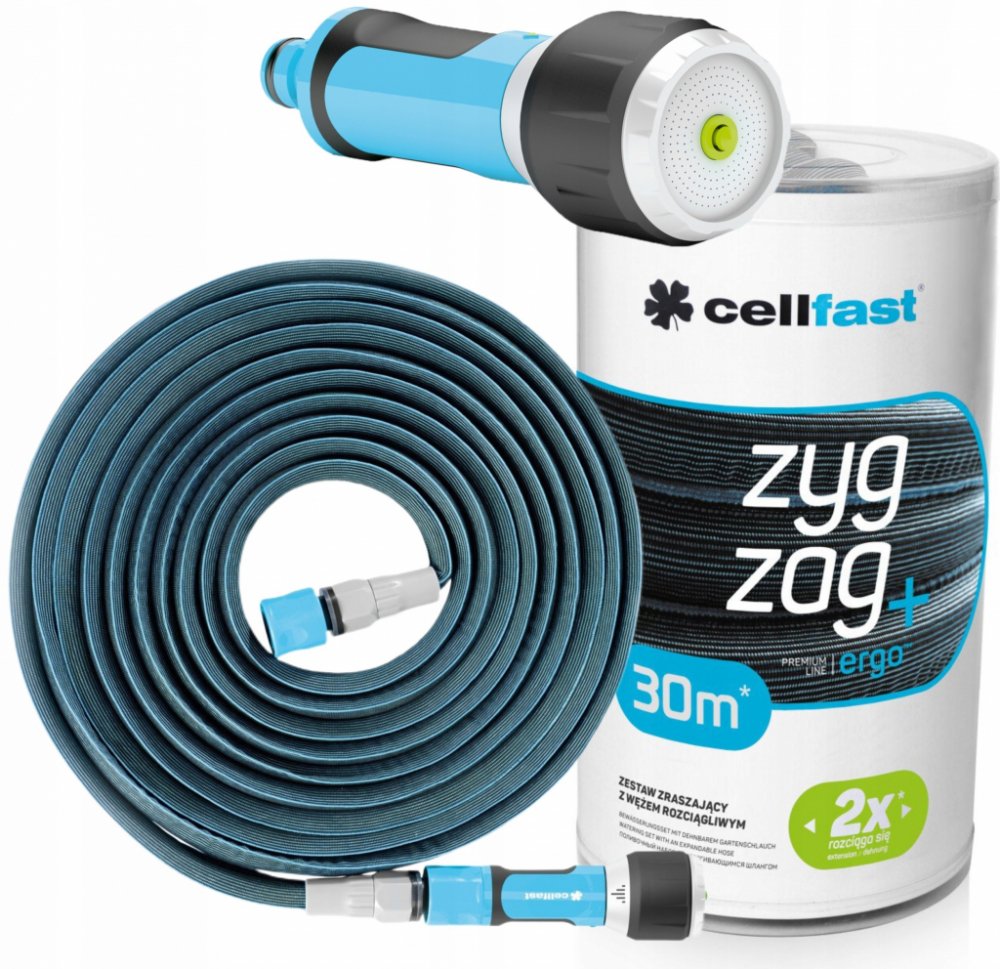 Smršťovací zahradní hadice ZYGZAG super flexi set 15m/30mZyzgZag je inovativní a extrémně kompaktní zahradní hadice, která po spuštění vody zdvojnásobí svou délku. Díky smrštění Vám ušetří mnoho místa. Díky m materiálům je extrémně lehká a zároveň velmi robustní. Povrch hadice je díky textilní vrstvě velmi příjemný na dotek. Použitá technologie zajišťuje komfort při používání. Nedochází k zalomení, či zamotání hadice. Maximální tlak je 6 barů. Sety jsou k dispozici ve dvou délkách 7,5m/15m, 15m/30m.Set obsahuje:Hadice v délce 15m/30mMultifunkční tryskaRychlospojka - stopRychlospojka - průtok vody druh: Hadicedelka: 15m/30mTlak: 6 barů Sada obsahuje roztažitelnou hadici ZygZag™, multifunkční postřikovač ERGO, rychlospojku - zastavení a spuštěníZygZag™ je inovativní a výjimečně kompaktní zahradní hadice, která se díky tlaku vody sama 2x prodlouží a po vyprázdnění se opět zkrátí na původní délkudíky m materiálům je hadice velmi lehká a zároveň odolnádíky látkové vrstvě je hadice příjemná na dotekpoužitá technologie zaručuje pohodlné používání bez uzlů a kroucení:7,5 m - provozní délka 15 m Technické údaje: Délka: 15 / 30 m Balení: plastová trubka Kategorie: Zavlažování zahrady Délka: 30 m Výška: 160 mm Šířka: 160 mm Délka: 245 mm V hromadném balení: 6 Zavlažovací sada s natahovací hadicí ZygZag™ 15 / 30 m Sada postřikovačů obsahuje napínací hadici Zygzag™, multifunkční přímý postřikovač ergo, stopspojky a přepadové rychlospojky. Zygzag™ je inovativní a mimořádně kompaktní zahradní hadice, která při proudění vody pod tlakem zdvojnásobuje svou délku a při vyprazdňování se samovolně zkracuje. Díky m materiálům je extrémně lehká a zároveň velmi robustní. Díky svému vnějšímu textilnímu potahu je příjemná na dotek. Použitá technologie zaručuje pohodlné používání bez zamotávání a zamotávání. ** Prohlédněte si fotografie Sada Premium Zygzag hadice 30 m. když se nepoužívá tan solo zabírá 15 metrů a zdvojnásobuje svou délku při plném použití a prodlužuje se na 30 metrů. obsahuje připojení kohoutku, rychlospojku, připojení con water stop systém a lanza multifunkční ergo. Je vhodný pro tlak až 6 barů a je mimořádně flexibilní. Jedná se o zavlažovací hadici pro domácí použití, která nezabírá mnoho místa a nabízí skvělý výkon. Po každém použití je třeba ji vyprázdnit a uložit na suchém a slunném místě, aby byla zajištěna dlouhá životnost prodlužovací hadice zygzag. Pokud se rádi staráte o každý detail ve své domácnosti a vlastníte nejnovější produkty, které vám usnadní život, zakupte si sadu hadic s příslušenstvím Cellfast Zygzag 30 m s možností prodloužení za nejlepší cenu. Doporučené použití: Zahrada Typ: Prodloužitelná sada hadic s příslušenstvím Součástí balení: Hadicová spojka Zavlažovací kopí Barva hadice: modrošedá Vlastnosti: Hadice je opatřena přípojkou pro zavlažování: Tlak: 6 BAR Délka trubky: 30 m