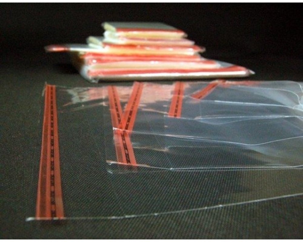 Sáček má svařované dno a strany, nemá boční ani spodní záložky a lepicí klopa je opatřena odnímatelným krycím páskem.