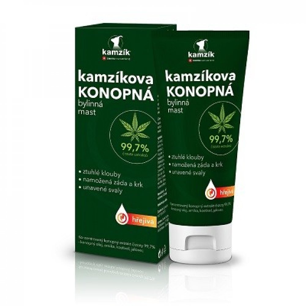 Hřejivá konopná mast Cemio Kamzíkova je navržena pro intenzivní péči o namožené svaly, klouby a oblast zad. Základ tvoří 10% konopný olej, který zklidňuje pokožku a podporuje její regeneraci. Kostival lékařský napomáhá vstřebávání podlitin, urychluje regeneraci namožených svalů, šlach a vazů. Arnika horská pomáhá při otocích a svalové únavě, působí zklidňujícím a regeneračním efektem.