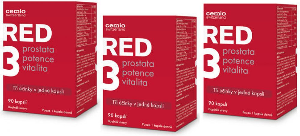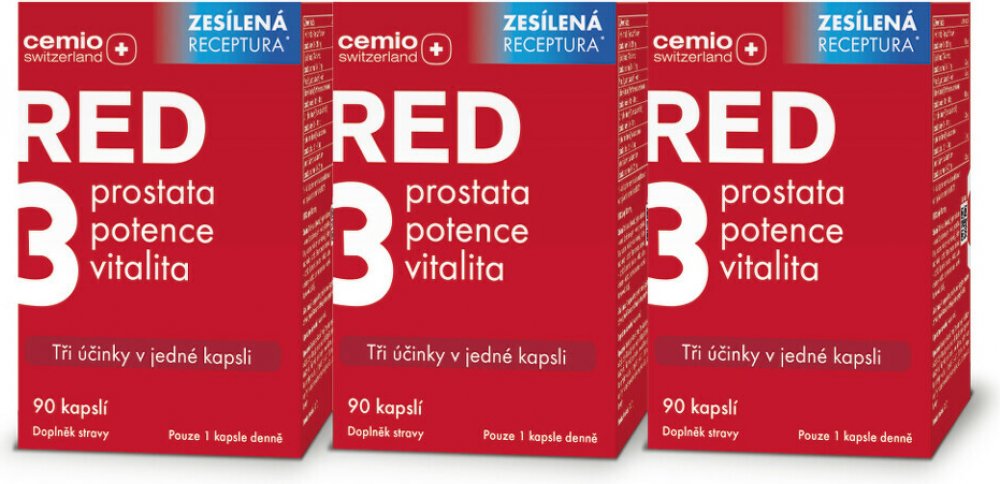 Cemio RED3, 3 x 90 kapslí Receptura doplňku obsahuje kombinaci extraktů 7 bylin a byla vyvinuta ve Švýcarsku.