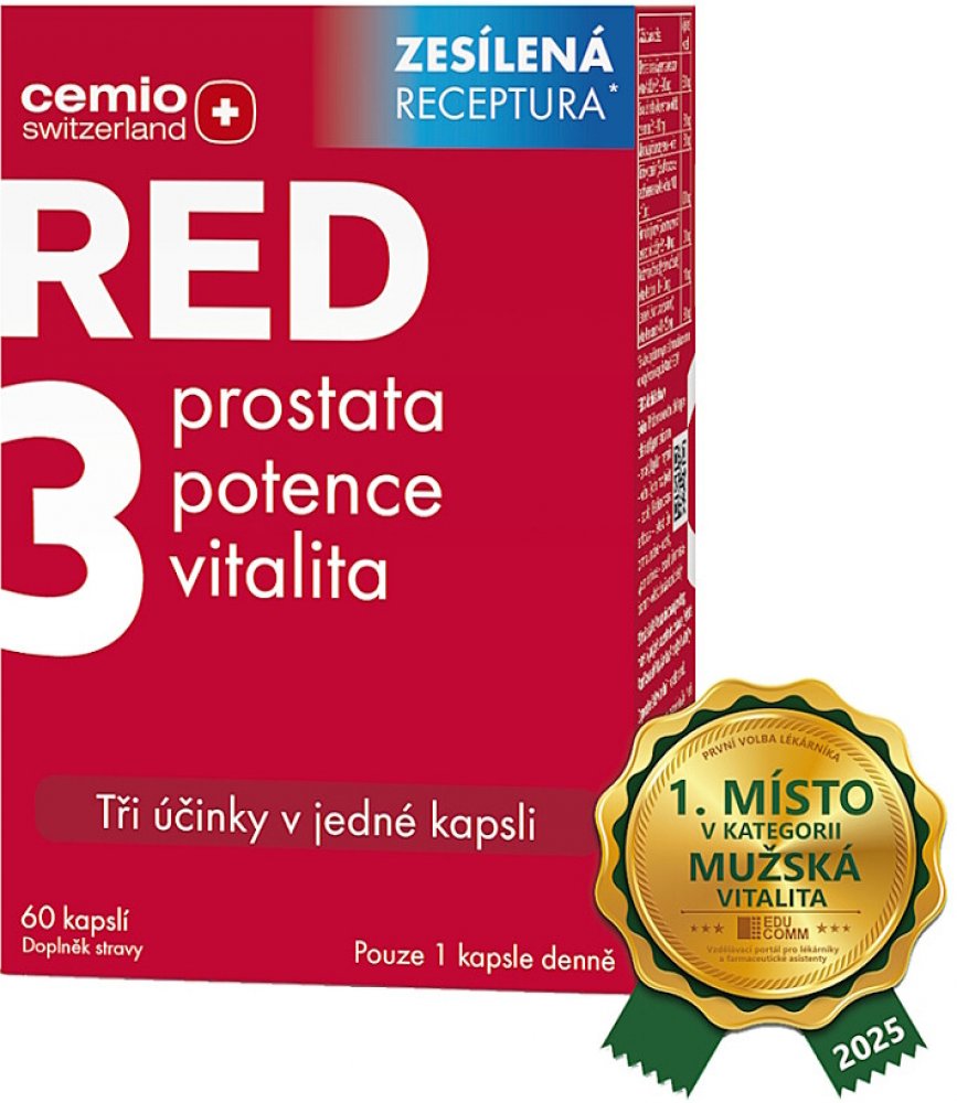 Složky přípravku jsou pak zpracovány maximálně funkčními technologiemi do finální podoby kapslí. Přípravek RED3® tak představuje skutečně novou generaci péče o prostatu, potenci a vitalitu moderního muže 21. století.