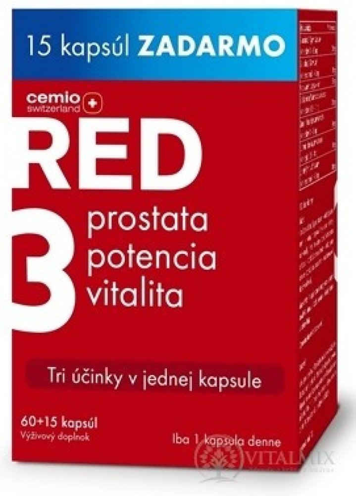 Cemio RED3 je prémiový doplněk stravy určený pro moderní muže, kteří chtějí podpořit své zdraví komplexně – od vitality, přes potenci, až po funkci prostaty. Díky zesílené receptuře s obsahem klinicky ověřených extraktů nabízí účinnou trojkombinaci účinků, které odpovídají potřebám mužů v různých životních etapách.