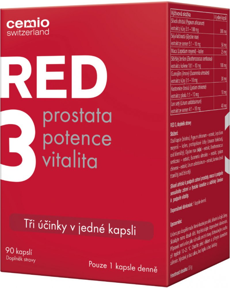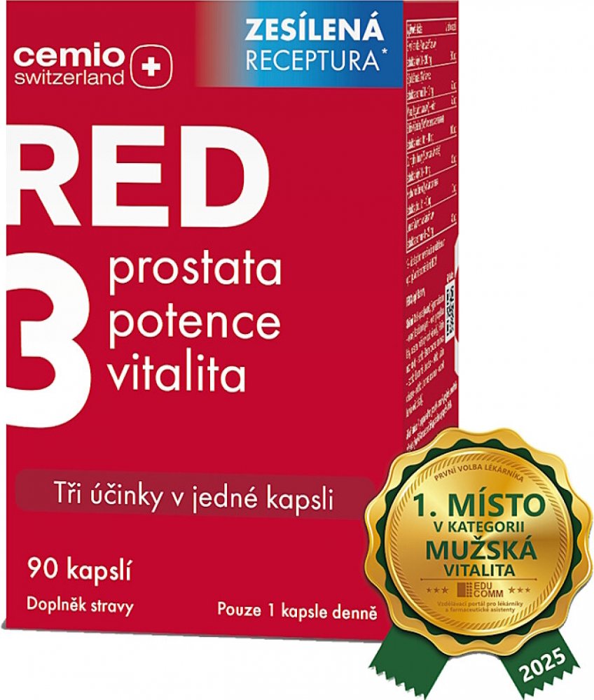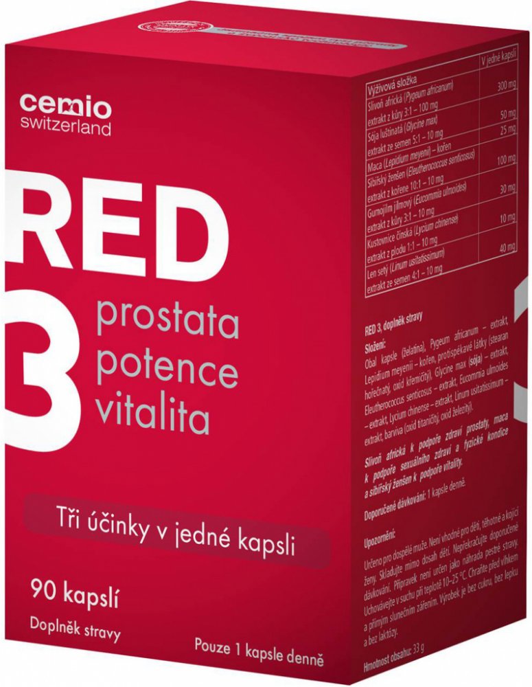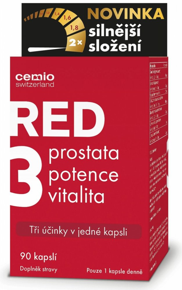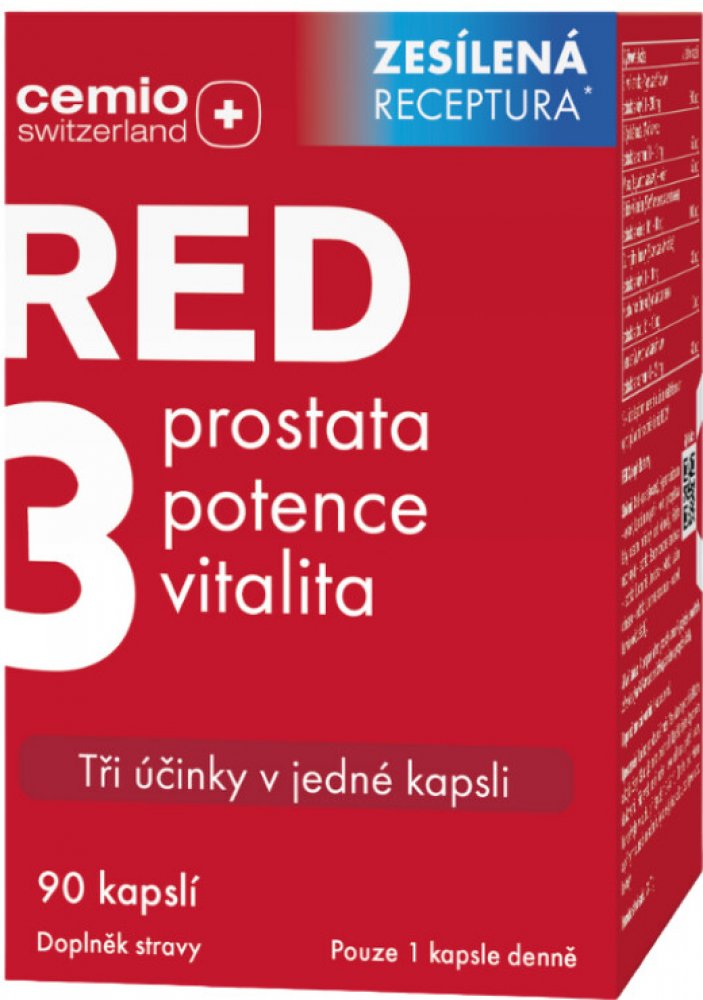 Doplněk stravy Cemio RED3 přináší trojitý účinek péče o prostatu, potenci a vitalitu v 1 kapsli.