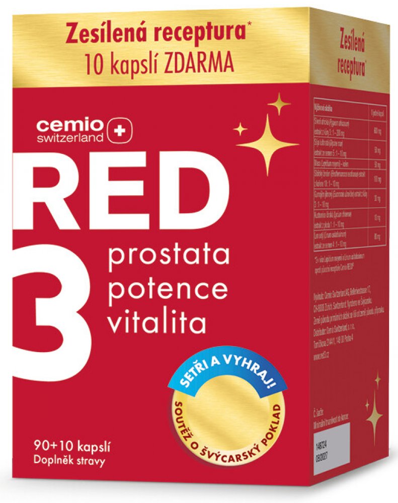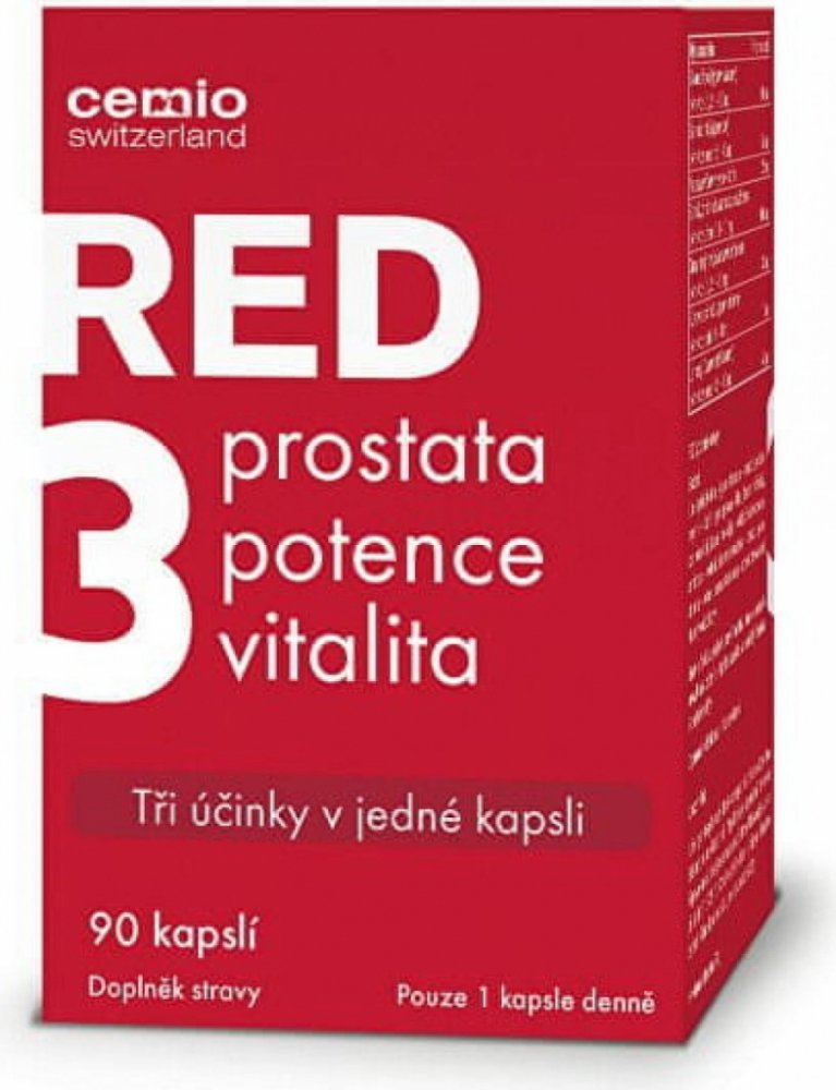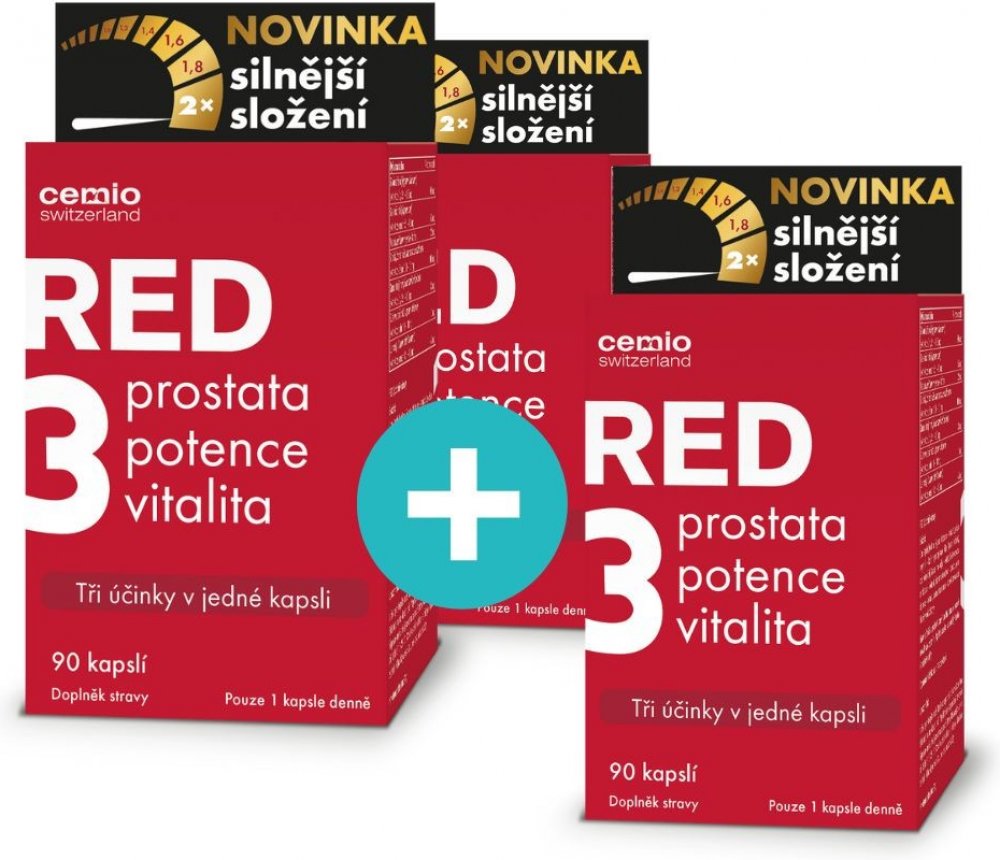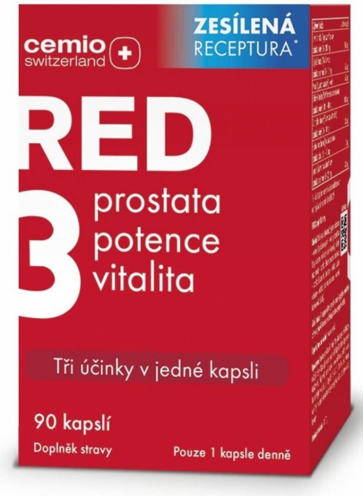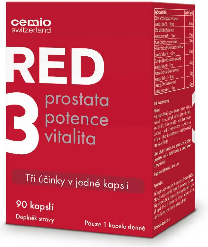 Doplněk stravy Cemio RED3 přináší trojitý účinek péče o prostatu, potenci a vitalitu v 1 kapsli.