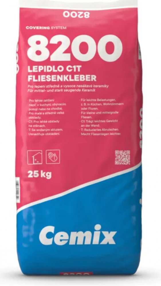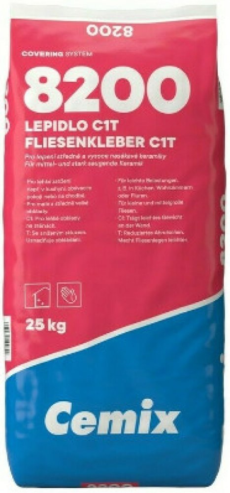 Klasifikace: C1T, standardně tvrdnoucí cementové lepidlo se sníženým skluzem.