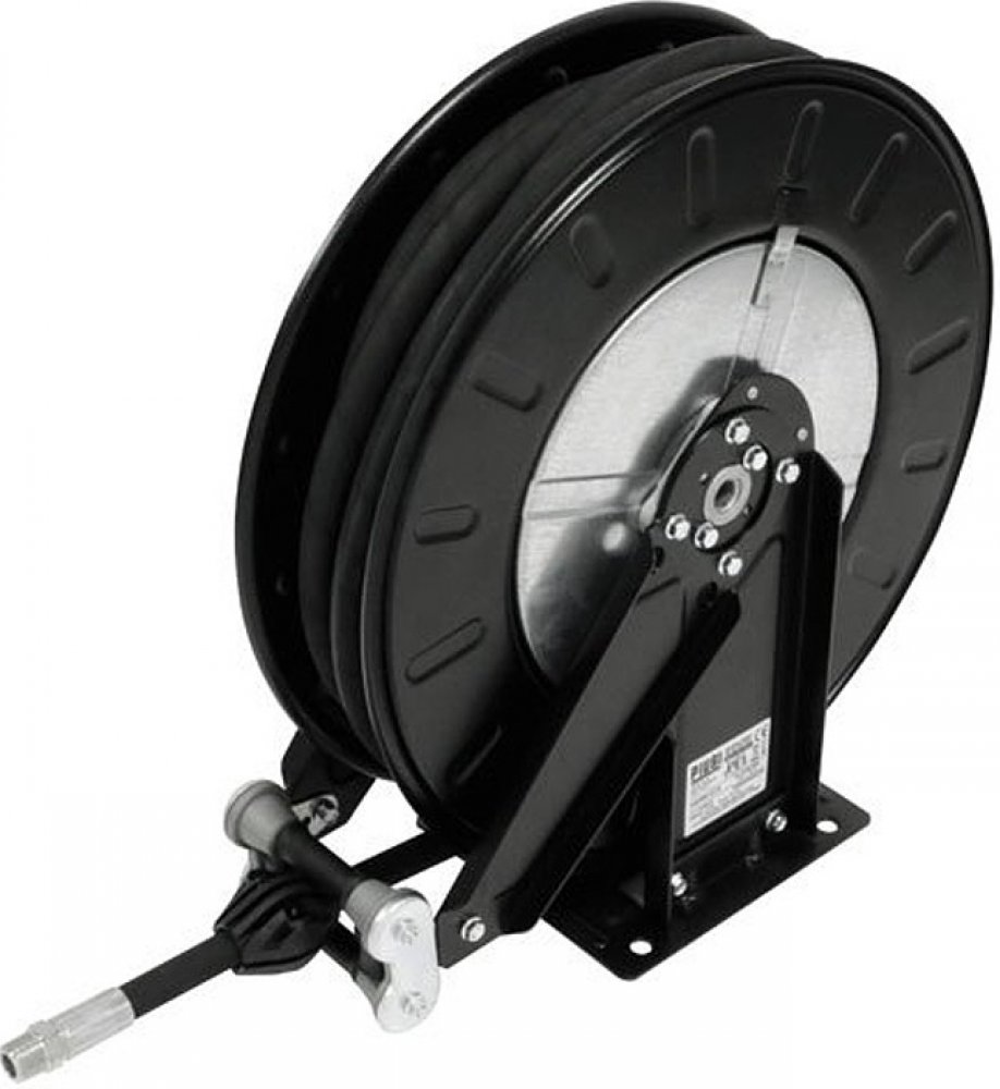 Buben je vybaven kvalitní pružinou zajišťující automatické navíjení hadice, která je elektricky vodivá pro bezpečnou manipulaci s benzínem. Praktický systém aretace umožňuje zajištění hadice v libovolné délce. Instalace zahrnuje kompletní montážní sadu včetně otočného kloubu G1", mosazného kolena a hadicových spojek.