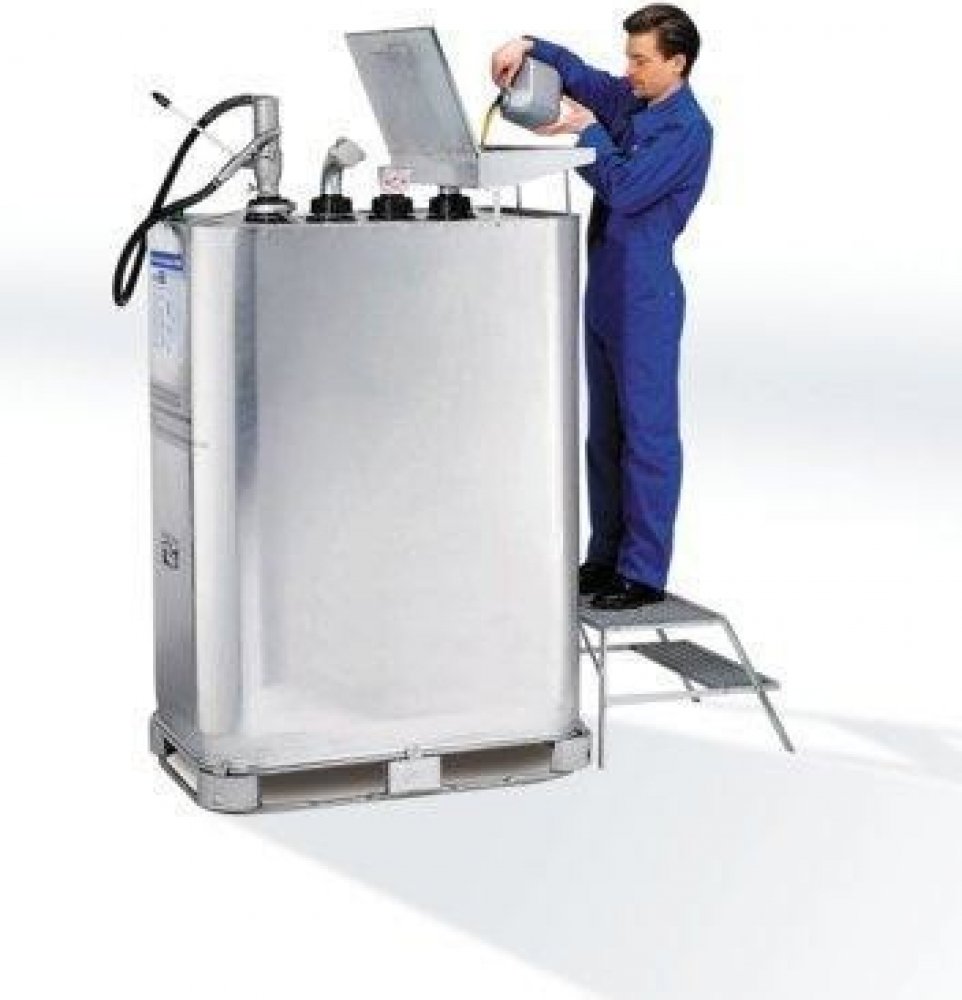 Konstrukce kontejneru: plášť vnější nádrže z ocelového plechu, vnitřní zásobník z Lupolenu 4261 A/Hostalenu GM 7745, olejová vana se 100% zachycovacím objemem, vypouštěcí hrdlo s vnitřním závitem 2" pro čerpadla, indikace stavu naplenění v litrech, optické zobrazení průsaku, paleta z ocelových trubek, pozinkovaná, plnící hrdlo s vnitřním závitem 2" k uchycení výdejní (čepovací) pistole, přídavné hrdlo, např. k namontování zajištění proti přeplnění, nebo odvzdušňovací hrdlo