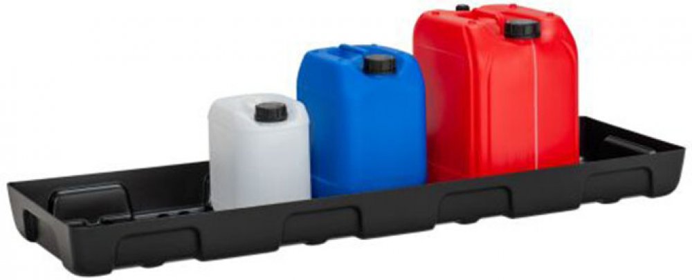 Záchytná vana vhodná pro umístění na regálovou polici.