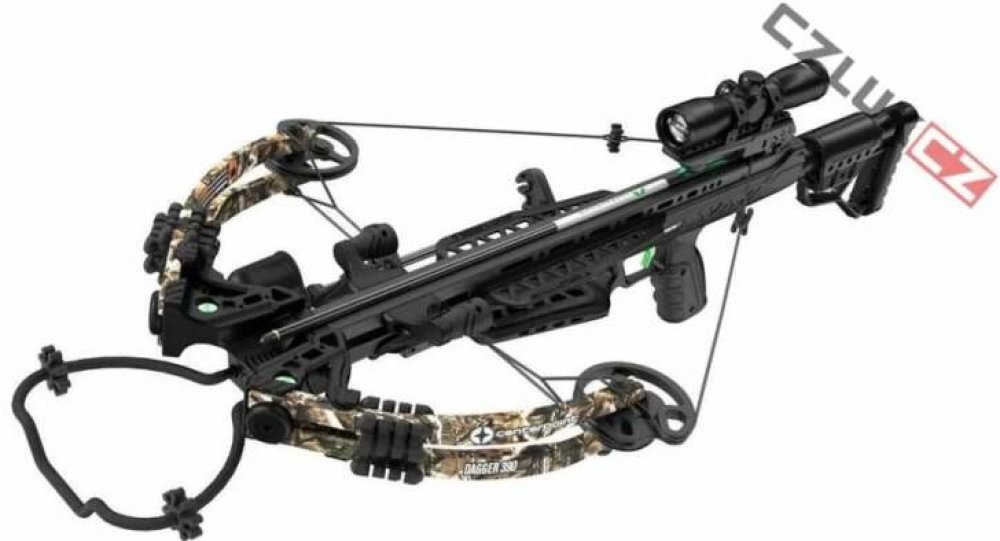 CenterPoint Dagger 390 je odolná kladková kuše s napínací silou 185 liber. Tento model vyniká svou přesností a vysokou kvalitou dílenského zpracování. Vystřelený šíp opustí lučiště rychlostí 119 m/s. Výsuvná pažba typu AR-15 dodává kuši taktický vzhled.