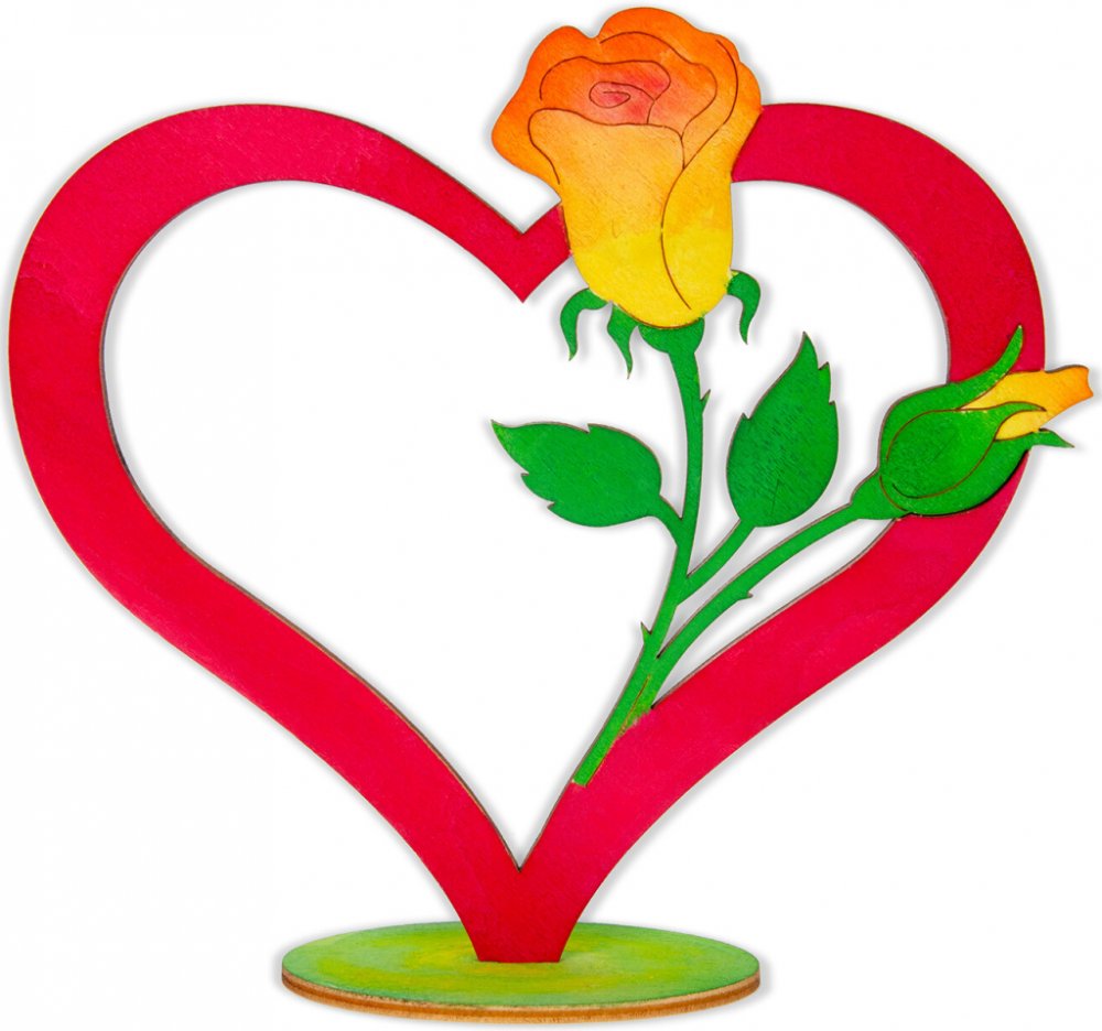 CENTROFLOR Dřevěné srdíčko s růží, nevybarvené Balení: 1ks, Rozměr: 20cm