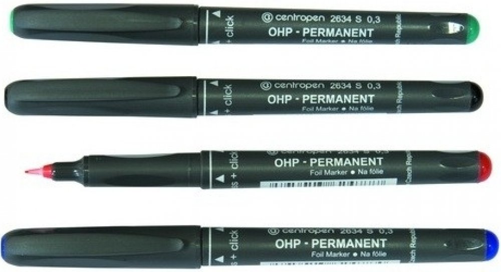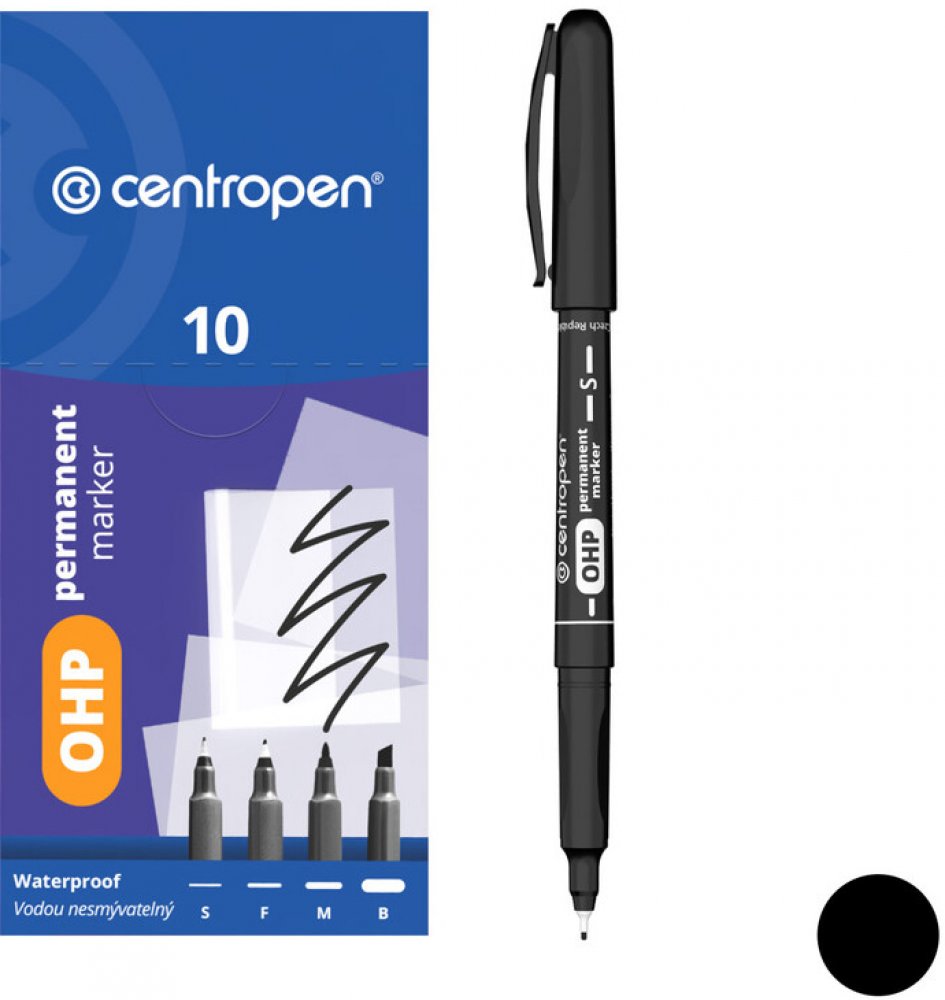 Centropen 2634 je pernamentní popisovač, píše na neporézní povrchy, má moderní desing s ERGO držením a odolává vodě a otěru.
