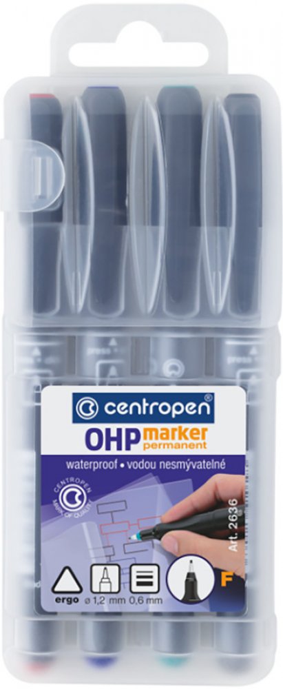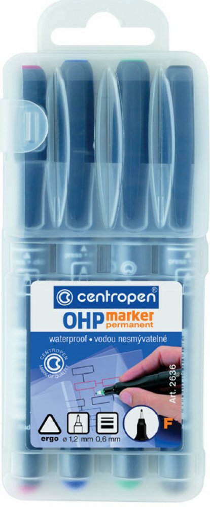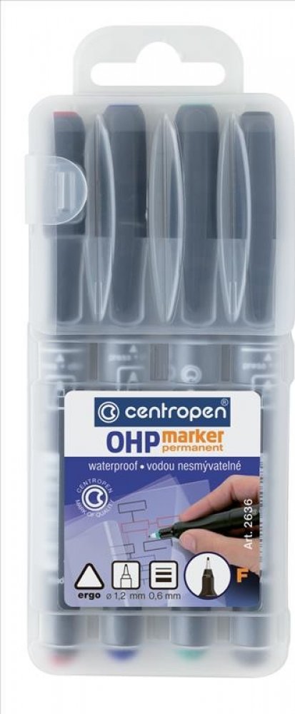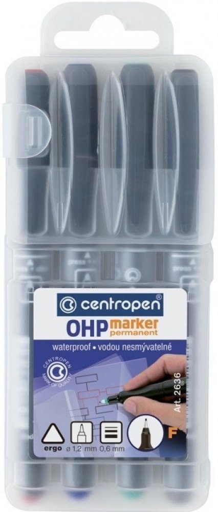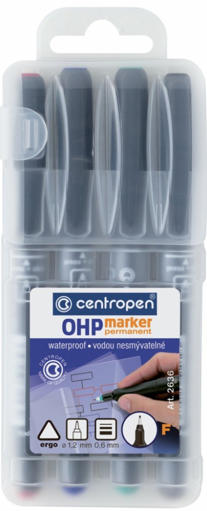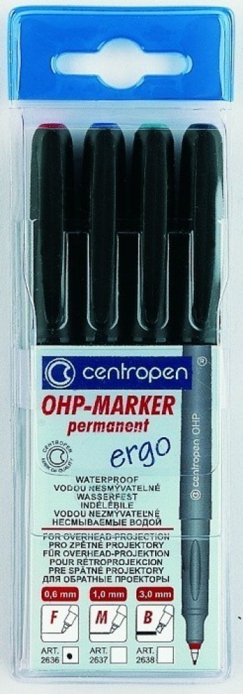 Jemný plastický hrot, šíře stopy 0,6 mm. K popisování CD a DVD. Ergonomický trojhranný úchop.
