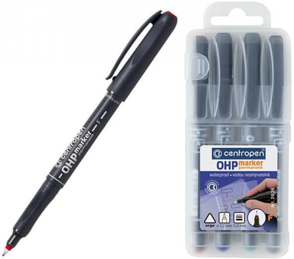 Určené zejména k psaní na plastické hmoty, skla, filmy, rentgenové snímky apod. Permanentní inkoust odolný vodě a setření, popisovač smývatelný lihem.