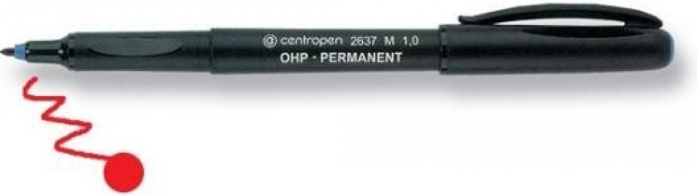 Permanentní popisovač s alkoholovým inkoustem pro neporézní povrchy. Fix centropen OHP Permanent 2636 F je permanentní popisovač určený pro psaní na neporézní povrchy. Je vybaven ergonomickým držáním pro pohodlné psaní a má alkoholovou bázi inkoustu, který je odolný vůči vodě a otěru. Tento model nabízí tenkou stopu 0,6 mm a je dostupný v několika základních barvách.