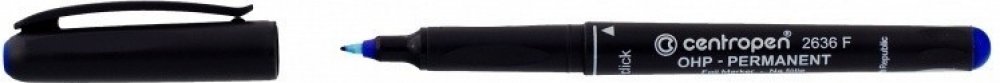 Liner Centropen 2636F OHP je určen zejména k psaní na plastické hmoty, skla, diarámečky, filmy, rentgenové snímky apod. Permanentní inkoust odolný vodě a setření, smývatelný lihem. Jemný plastický hrot, šíře stopy 0,6 mm.