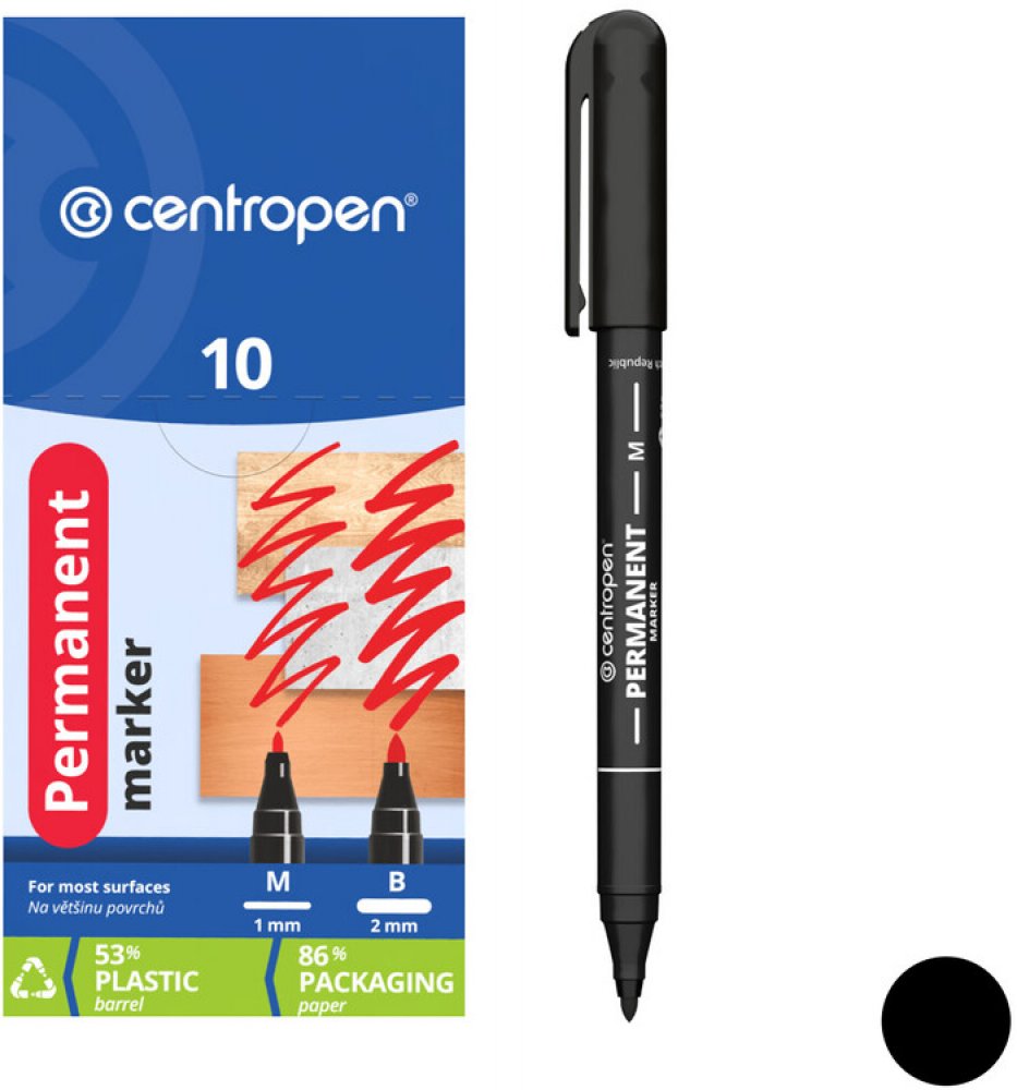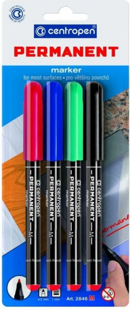 Univerzální permanentní popisovač, píše na většinu povrchů, vhodný k psaní na: