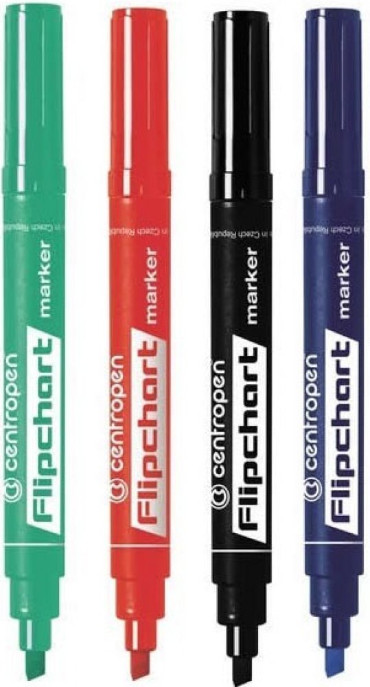 Centropen 8560 FLIPCHART je značkovač na papírové tabule. Má klínový hrot, po otevření má funkčnost jeden týden, nepropíjí papírem.