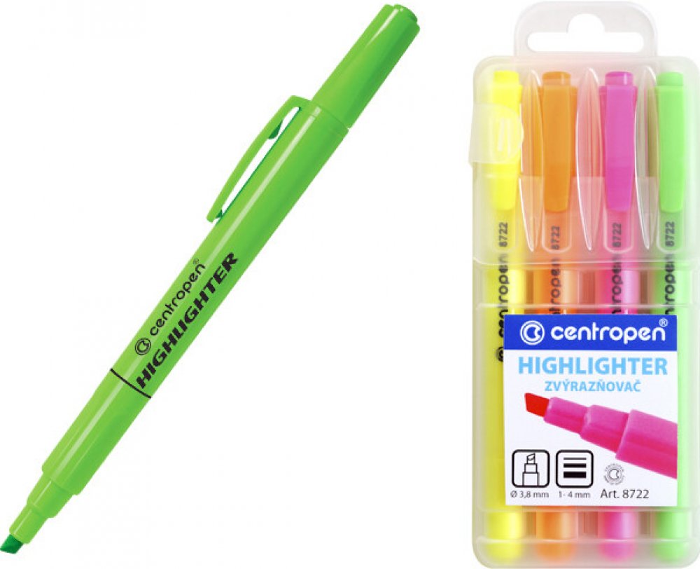 Centropen 8722 HIGHLIGHTER je celofluorescenční Zvýrazňovač. Je vybaven ERGO držením.Obsahuje fluorescenční pigmentový inkoust. Je určen na všechny druhy papíru a je osazen klínovým hrotem.