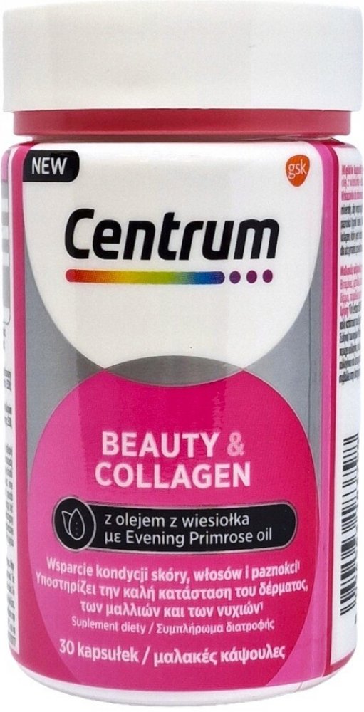 Centrum Beauty & Collagen je komplexní doplněk stravy ve formě kapslí, vytvořený speciálně pro ty, kteří chtějí podpořit zdraví pokožky, vlasů a nehtů zevnitř. Tato pokročilá receptura kombinuje klíčové vitamíny, minerály a kolagen, aby nabídla komplexní péči a podporu pro vaši vnitřní i vnější krásu.
