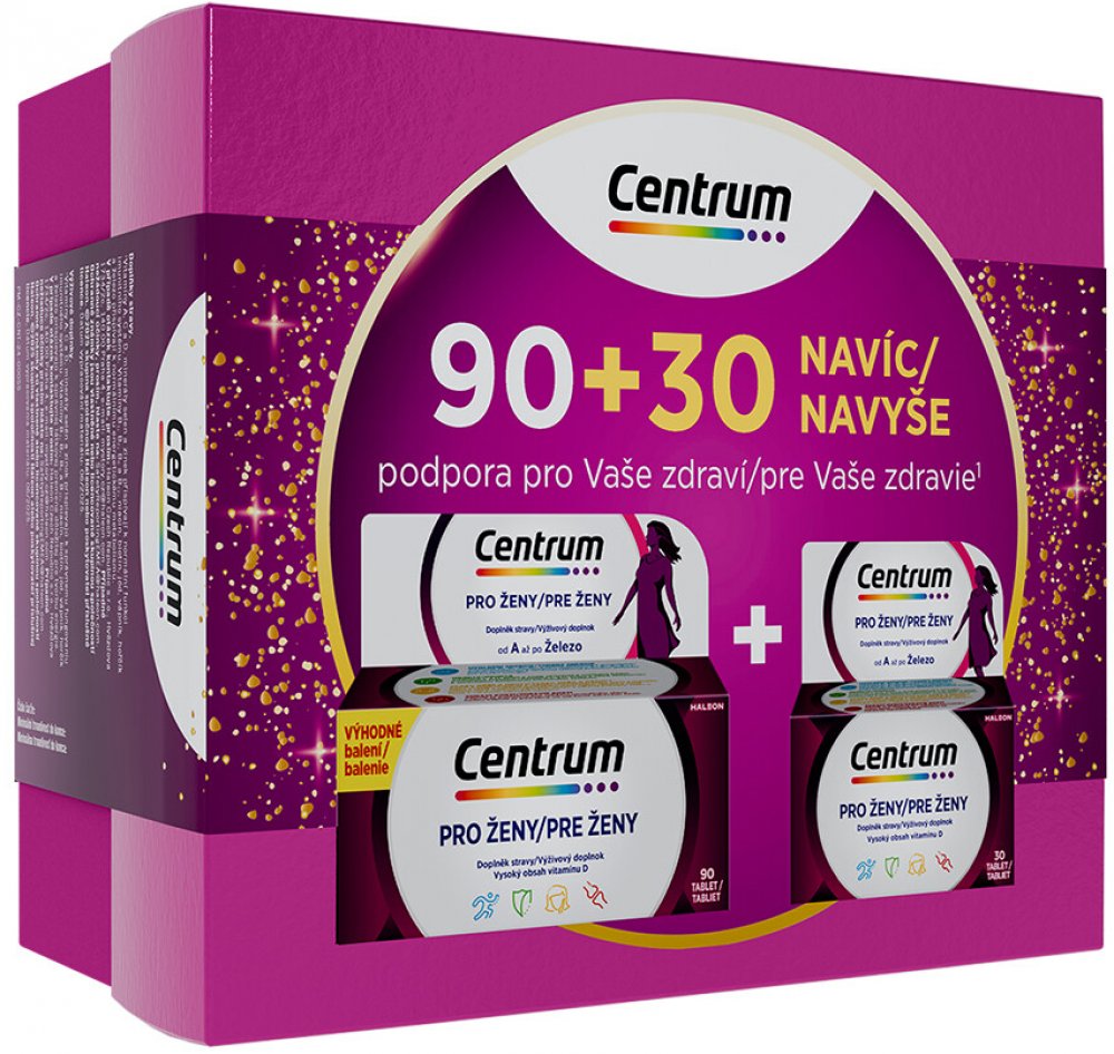 nové vylepšené složení s vyšším obsahem vitaminu D - 400 IU (mezinárodních jednotek) v denní dávce (v porovnání s předchozím složením Centrum pro ženy) - vitamin D přispívá k normálnímu vstřebávání/využití vápníku a fosforu a k udržení normálního stavu kostí