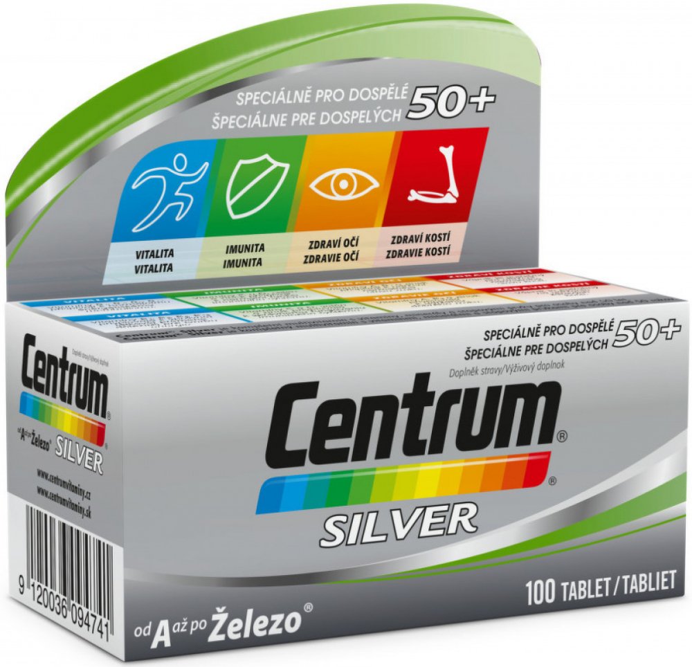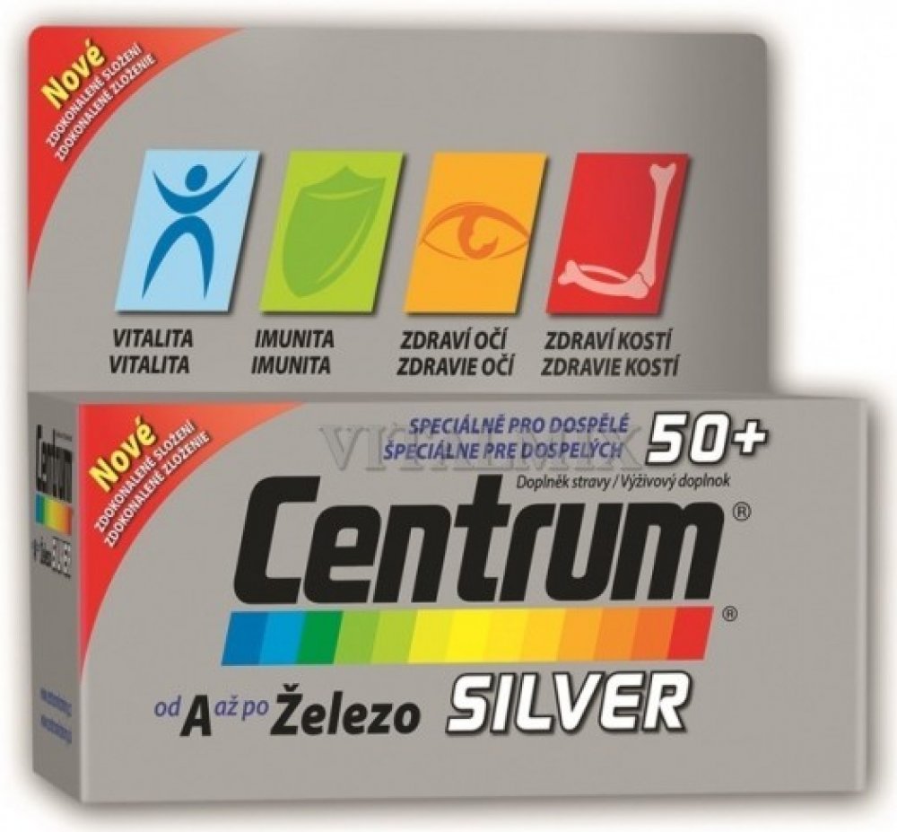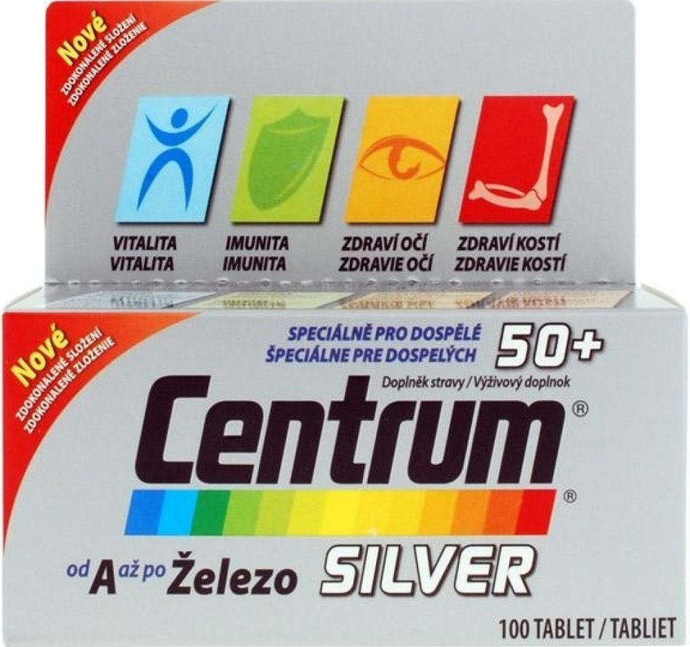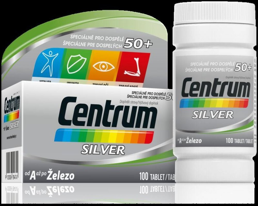 Centrum Silver je speciálně navrženo tak, aby uspokojovalo Vaše nároky na výživu a tím pádem také Vaše zdraví, pokud je Vám 50 a více let.