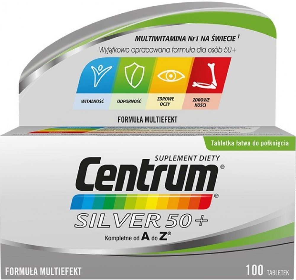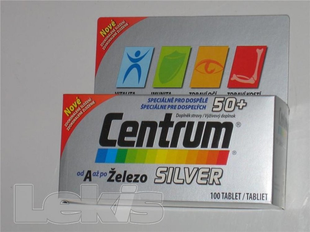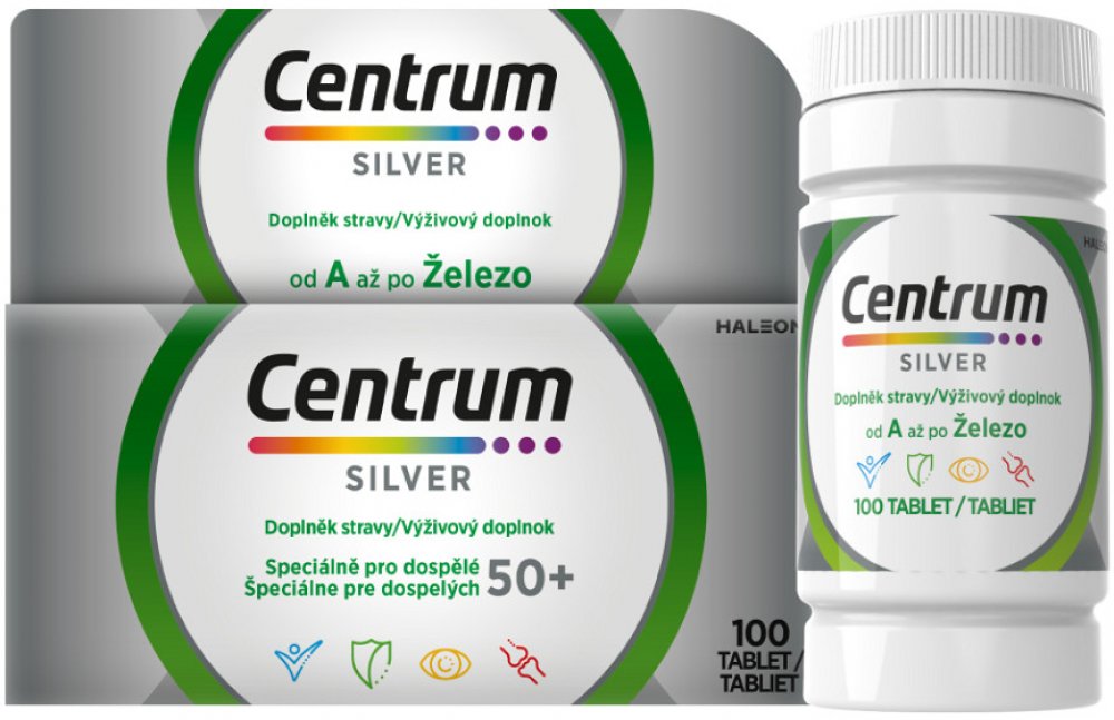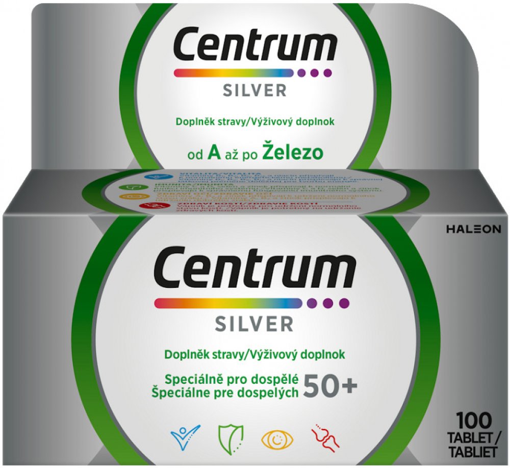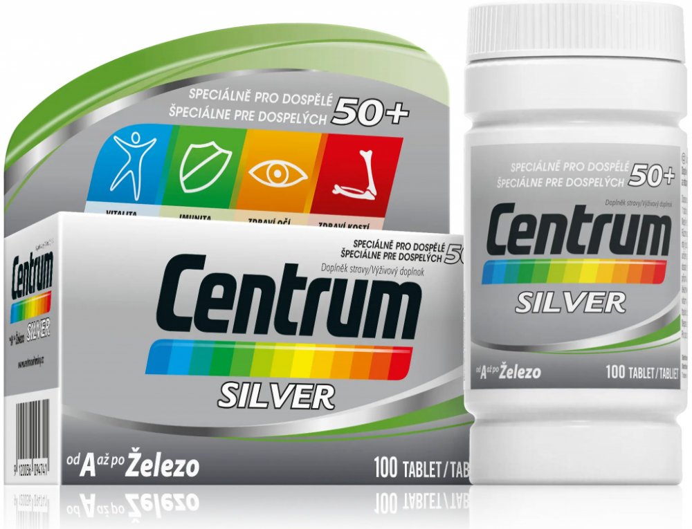Centrum Silver je speciálně navrženo tak, aby uspokojovalo Vaše nároky na výživu a tím pádem také Vaše zdraví, pokud je Vám 50 a více let.