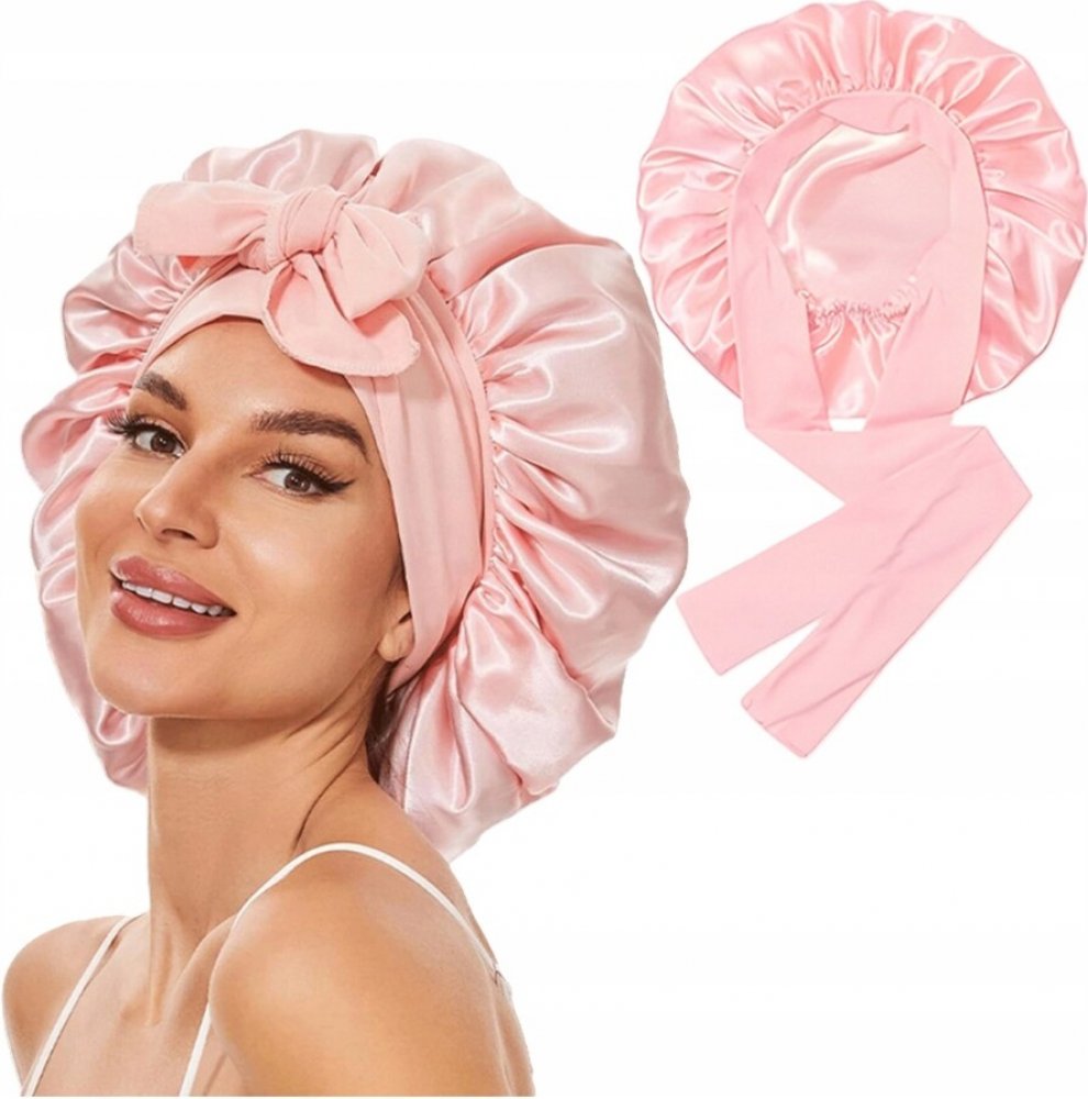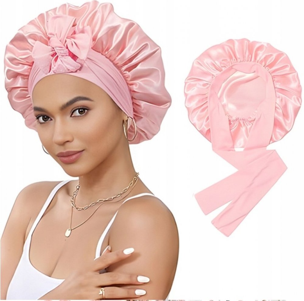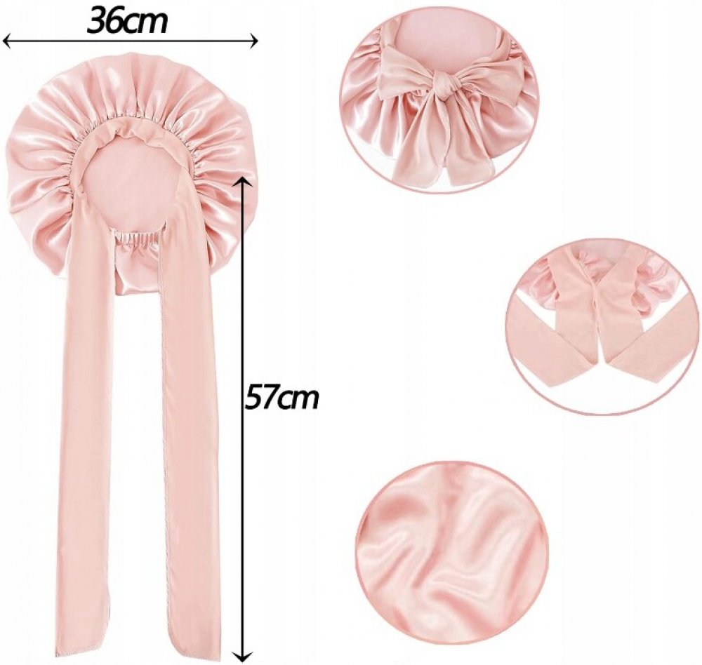 Hedvábná čepice na spaní Saténová čepice do vlasů s páskem