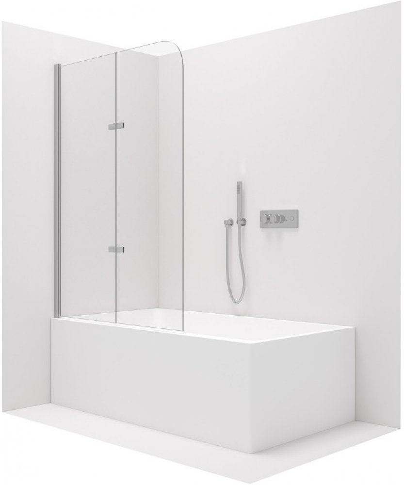 Zástěna je vyrobena ze dvou křídel s možností skládání. Toto řešení šetří místa v koupelně a umožňuje vám volně využívat zbývající prostor, pokud zrovna neužíváte koupací oblast.