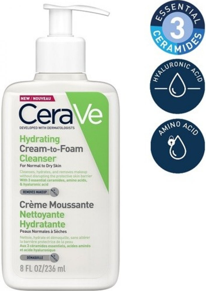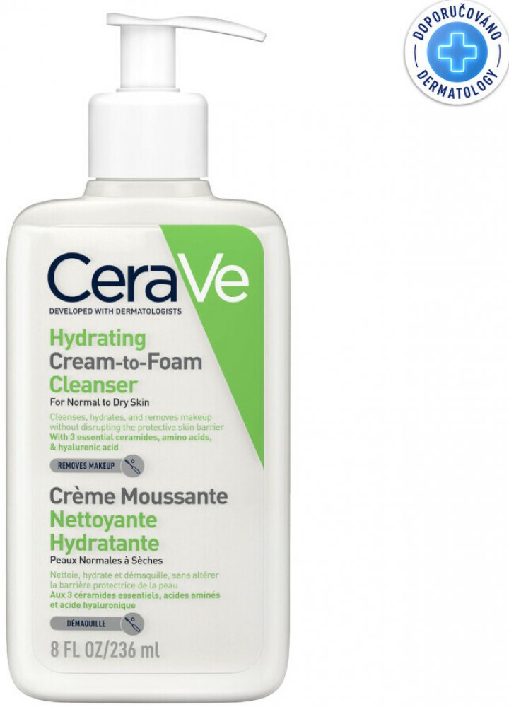 Hýčkejte svou suchou pleť i při mytí. Dopřejte jí šetrný čistící a pěnící krém CeraVe Facial Cleansers Hydrating Cream-To-Foam. Jedinečné krémové složení se při kontaktu s vodou promění v jemnou pěnu, která odstraní veškeré nečistoty, přebytečný maz a make-up. Současně vaši pleť zanechá hydratovanou a osvěženou s pocitem pohodlí.